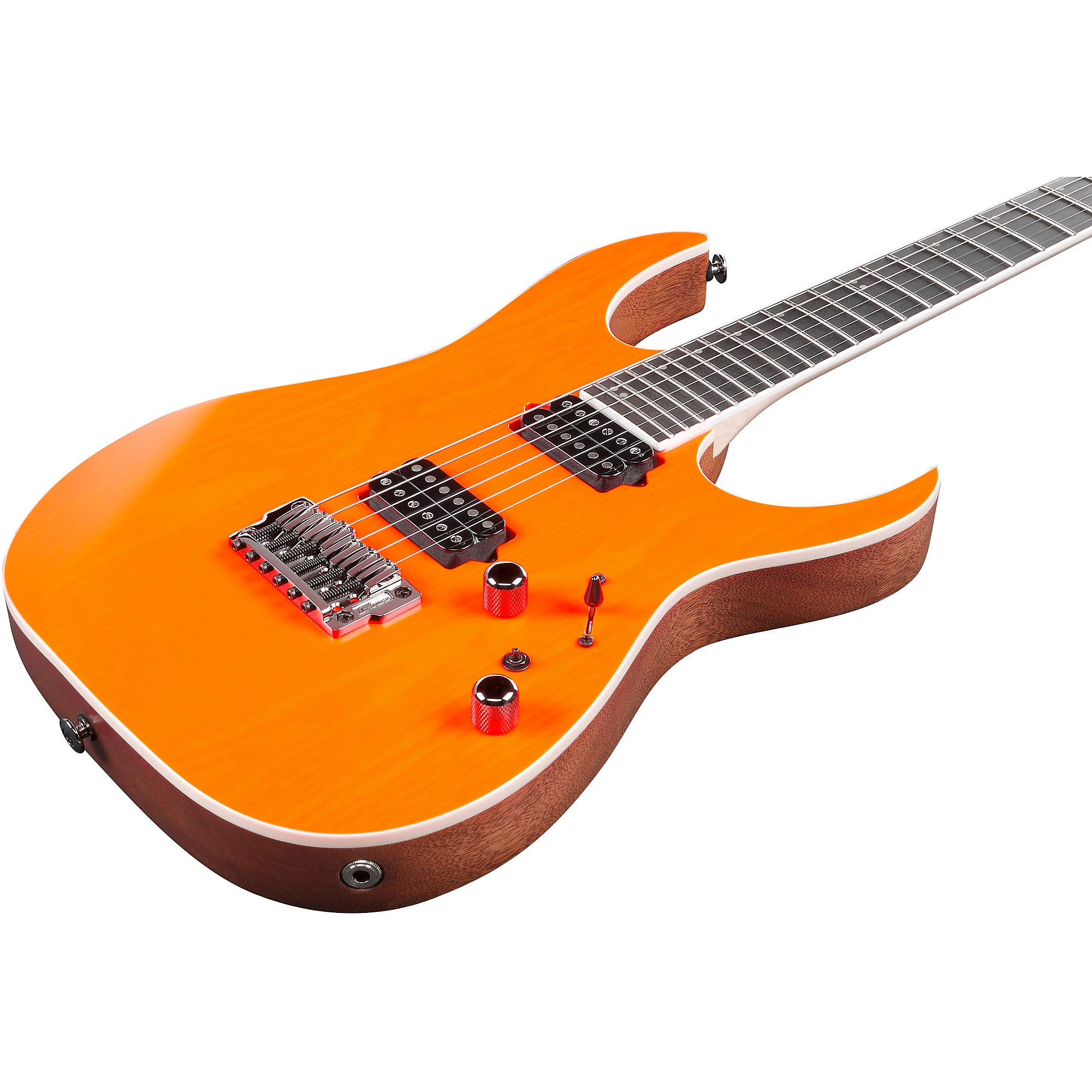 Ibanez RGR5221 – це модель цільнокорпусної електрогітари серії RG, що представлена компанією Ibanez у 2020 році. Вона виробляється у Японії компанією FujiGen як частина висококласної лінії Prestige. Ця гітара є втіленням витонченої брутальності – це ідеальне поєднання зовнішнього вигляду, звуку та грабельності. Резонуючий корпус цієї гітари з африканського червоного дерева з топом з ясена наповнює Вашу гру чудовою сумішшю тепла, яскравості та сустейну. Зручний гриф Super Wizard HP, що складається з 5 частин, увінчаний накладкою із чорного дерева. Гриф має люмінесцентні бічні точки для покращення видимості на сцені та привабливу атласну обробку. А коли Ви почуваєтеся агресивно, хамбакери Bare Knuckle Brute Force забезпечать Вас високою вихідною потужністю та глибоким, насиченим звуком. Щоб надати RGR5221 неперевершену стабільність та стійкість, Ibanez звернулася до перевіреного часом бриджу Gibraltar Standard II. Цей простий фіксований бридж міцно кріпиться до корпусу, що забезпечує максимальну передачу звуку від струн до корпусу. RGR5220M – це споріднена модель з подвійним тремоло-бриджем і накладкою з клена. RGR5227MFX – аналогічна семиструнна модель з накладкою з клена.