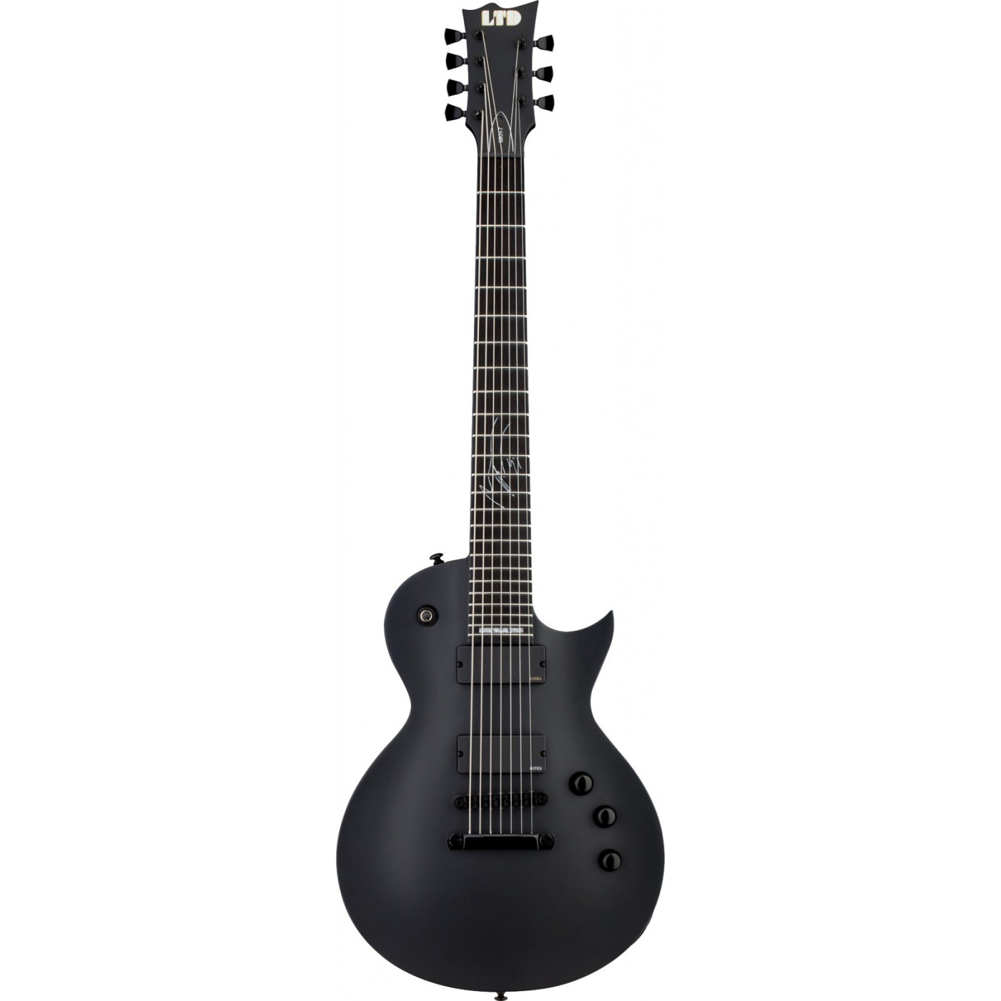 Підписний інструмент від Марка Хейлмуна (Mark Heylmun) – LTD МКH-7 пропонується в чорному матовому кольорі та допоможе Вам розширити межі звучання важкого металу. Червоне дерево заслужено вважається одним з кращих для виробництва інструментів. Його тембр характеризують глибокі низи та згладжені верхи – співуче оксамитове звучання. Наскрізний гриф забезпечує поліпшену віддачу і значно збільшує сустейн. Завдяки вбудованому передпідсилювачу датчики EMG не створюють фон і володіють високим виходом. Ці звукознімачі володіють характерним пізнаваним тембром. Бриджева система TonePros – просте, але при цьому досить інноваційне удосконалення стандартного Tune-o-matic. Обидві частини системи, бридж і струнотримач, повністю фіксуються за допомогою двох невеликих гвинтів по краях. Завдяки фіксації збільшується сустейн, звучання інструменту стає повнішим, а зміна струн більш зручною. При розробці кілків для гітари особлива увага приділялася простоті їх використання та елегантному дизайнові. Нові кілки ESP стабільніше тримають налаштовану струну і спрощують процедуру заміни струн.