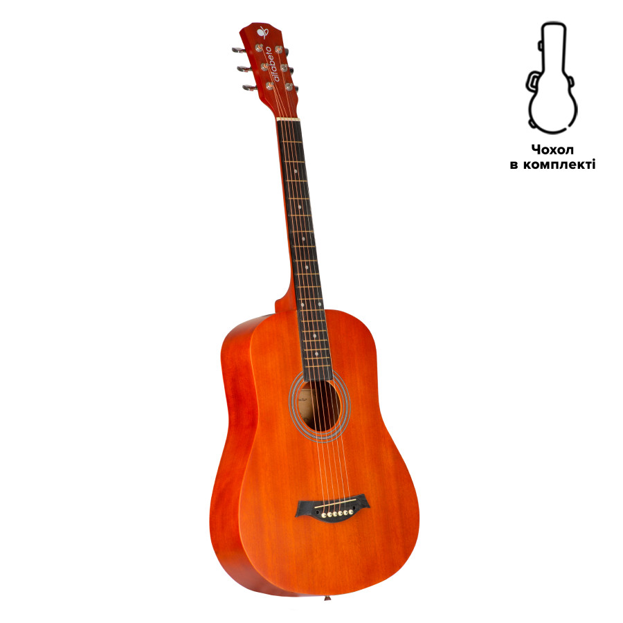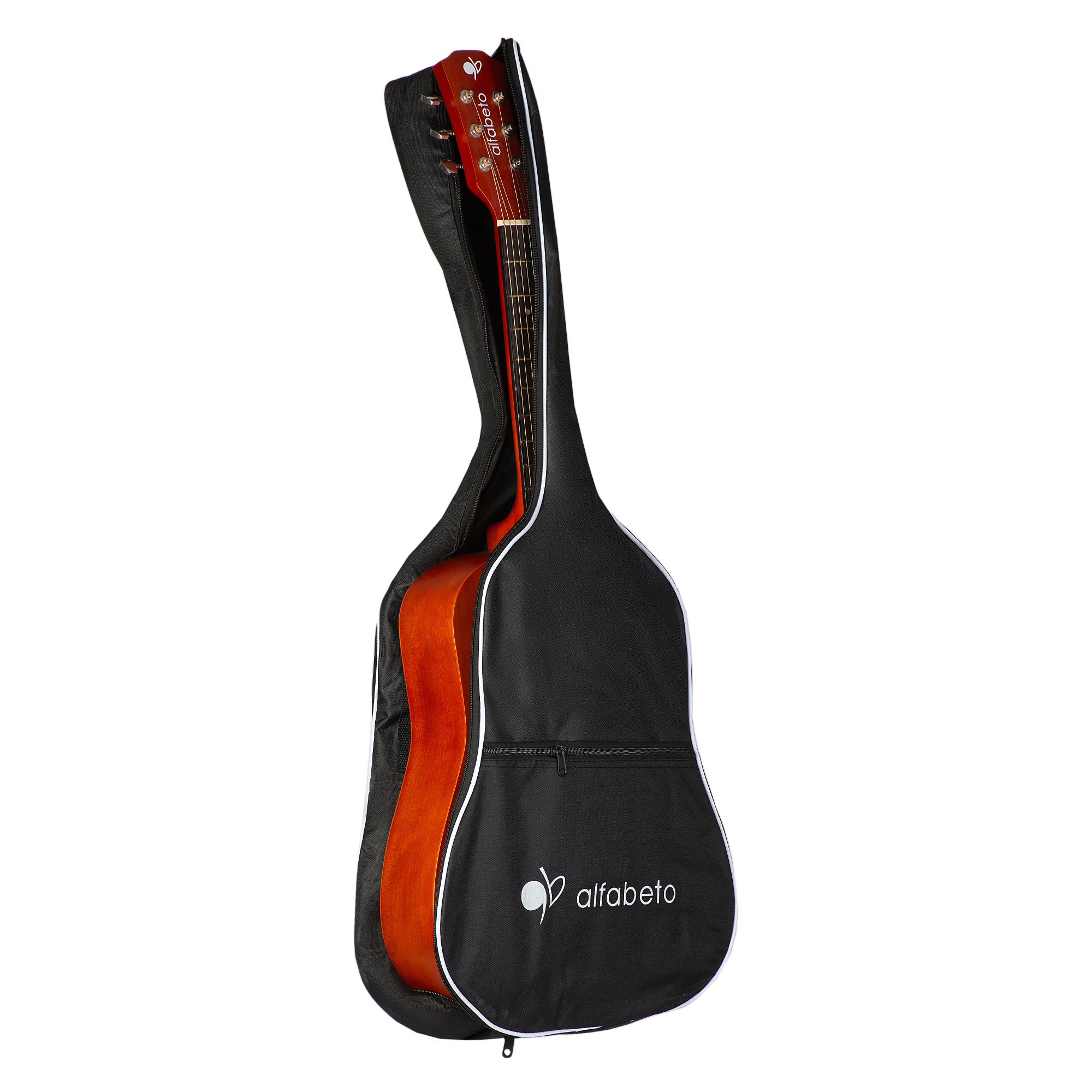 Alfabeto Traveler-MH – 38-дюймова тревел гітара з металевими струнами. Вона виготовлена з червоного дерева, завдяки чому має міцну конструкцію, не боїться різких перепадів температури, а також має високу водостійкість. Має вужчу товщину корпусу для зручності гри. Ця модель виконана в натуральному кольорі червоного дерева з атласним покриттям. Поставляється з фірмовим чохлом у комплекті.
