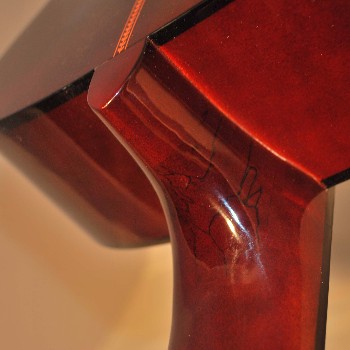 В районі 12 лада горб, до гри непридатна. По лаку в місці кріплення п'яти грифа до деки пішла невелика тріщина. Струни демонтовані. Декор.