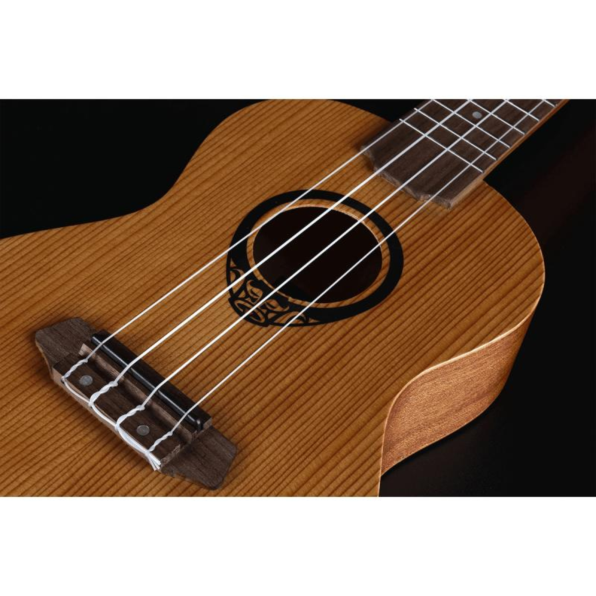 Корпус даного укулеле виготовлений із деревини сапеле, а верхня дека із кедру. Це надає звучанню інструмента чудову збалансованість і забарвлення. Гриф також виконаний із деревини сапеле та має 14 ладів. Мензура становить 377 мм. Накладка на гриф грифа та бридж зроблені із горіха, що чудово доповнює естетичний вигляд укулеле та забезпечує комфортну гру. Верхній та нижній поріжки зроблені із графіту та мають ширину 34 мм та 53 мм відповідно. Корпус має сатинове покриття.
