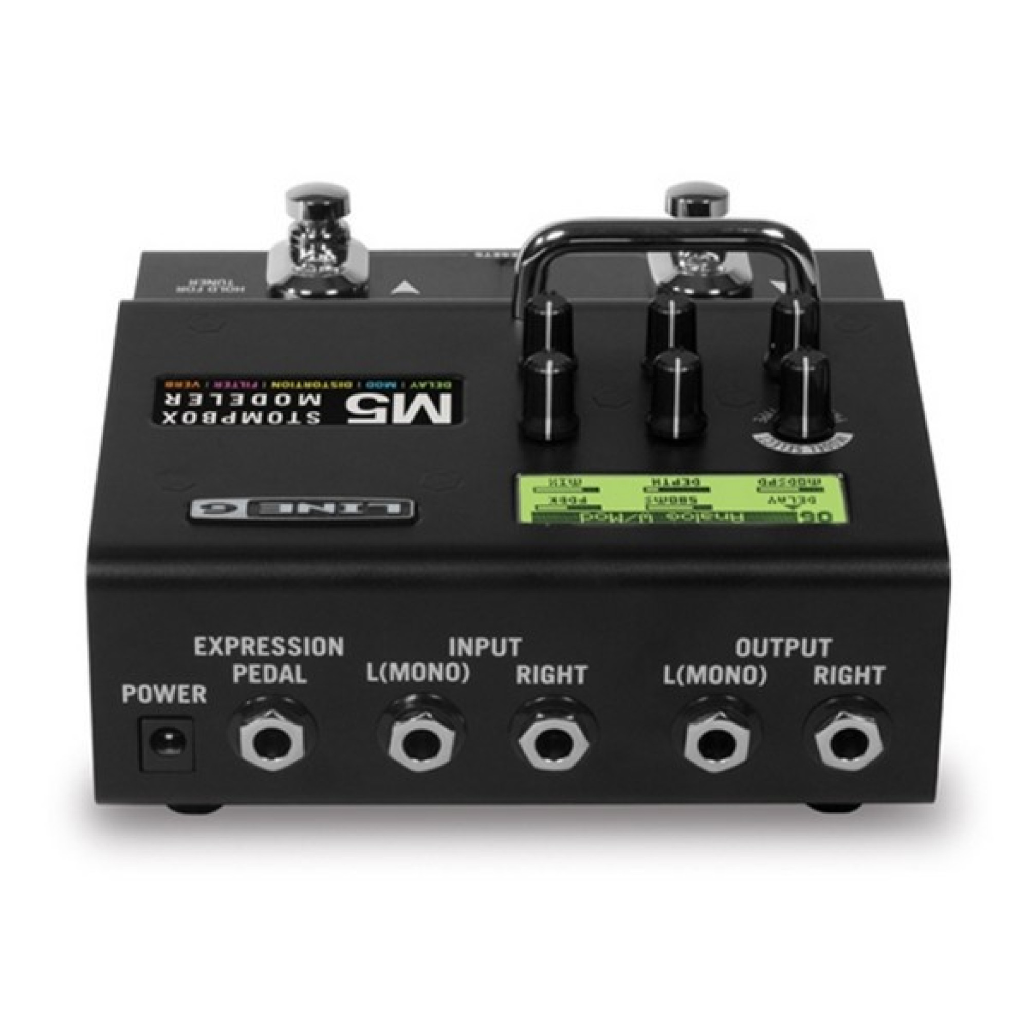 Також є вхід для педалі експресії за допомогою якої Ви зможете керувати динамічними ефектами: гармонайзер, wah, pitch glide. Як і інші педалі серії Stompbox Modeler, М5 має міцний металевий корпус, надійні роз'єми і перемикачі.