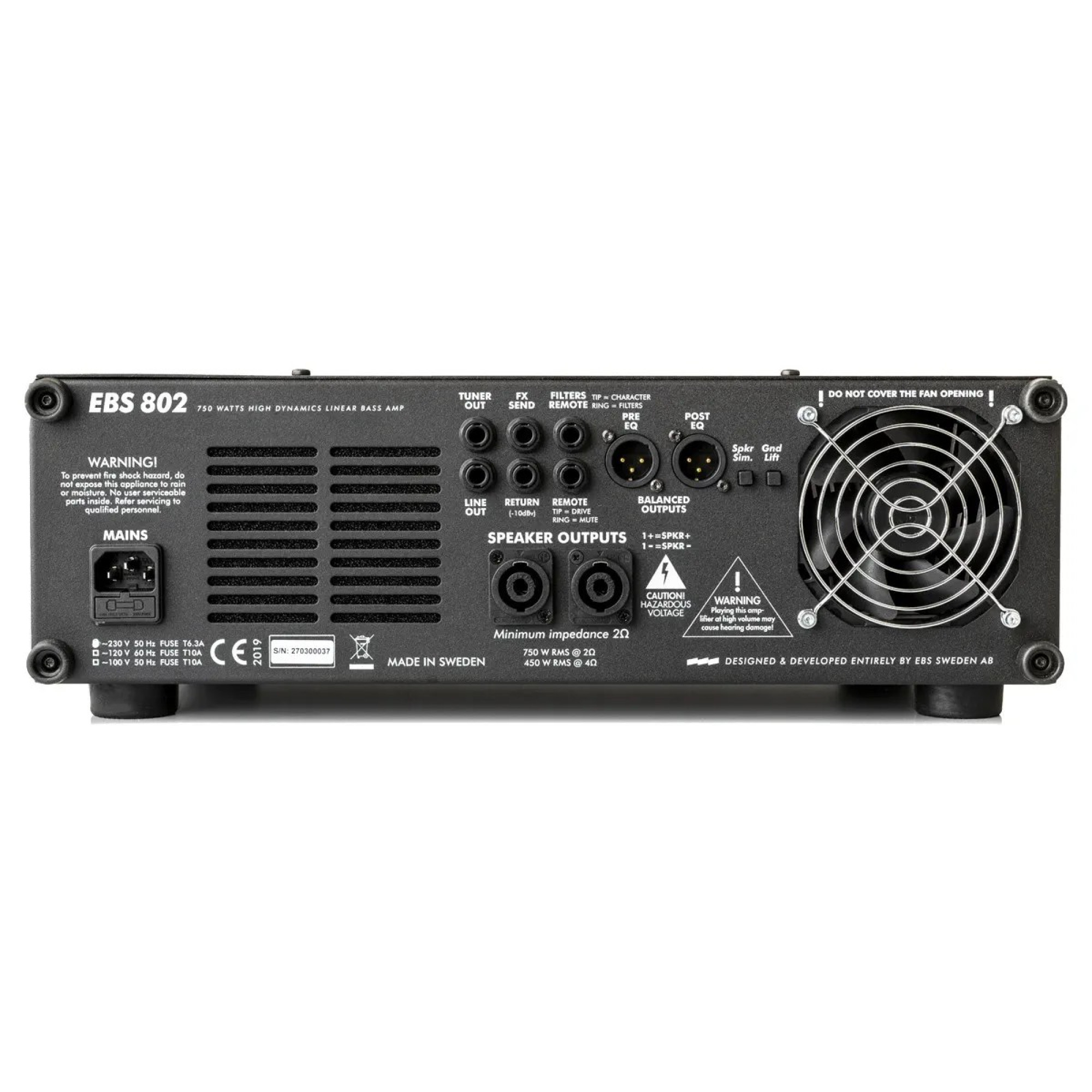 EBS 802 поміщається у 19-дюймовий рековий стенд. Підсилювач повністю виготовлений у Швеції.