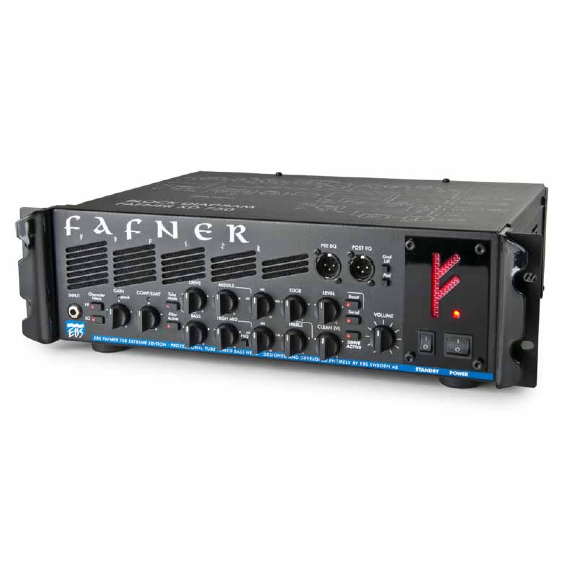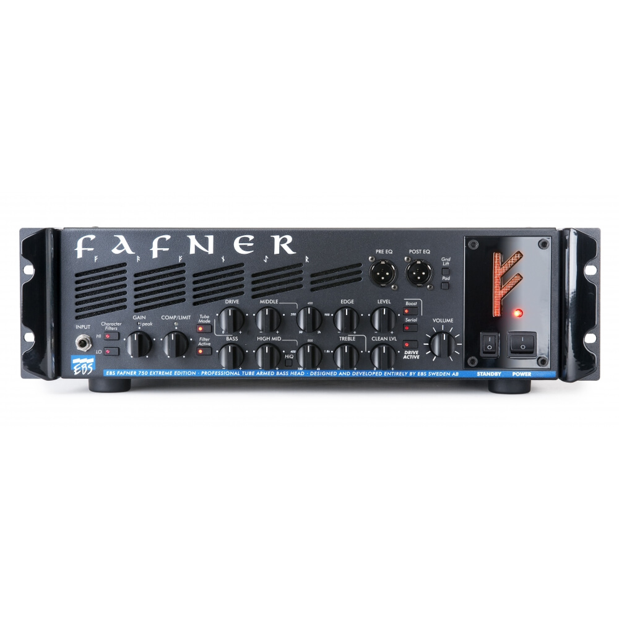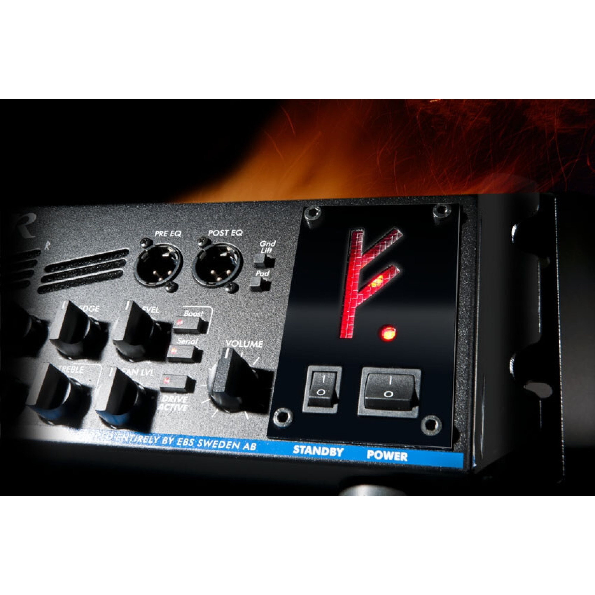 Двоканальний передпідсилювач. У EBS Fafner II встановлений двоканальний передпідсилювач. Нижній канал призначений для чистого звуку, а верхній - для перевантаженого. Обидва каналу обладнані еквалайзерами, які дозволять налаштувати звук відповідно до Ваших вподобань.
