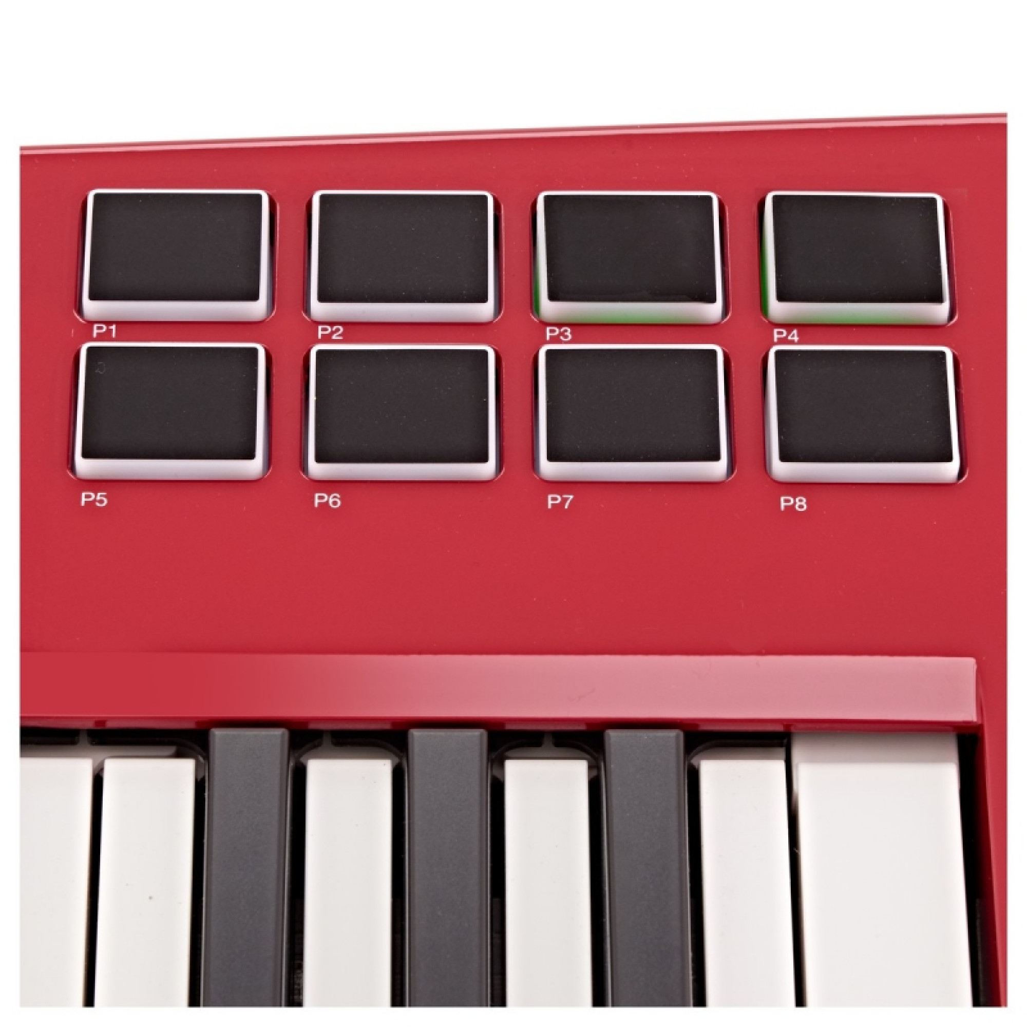 Кнопки Octave Up/ Down, колесо Pitch Bend, стрічковий контролер, який призначається, акселерометр, 8 програмованих фейдера, 8 динамічних педів з RGB підсвічуванням