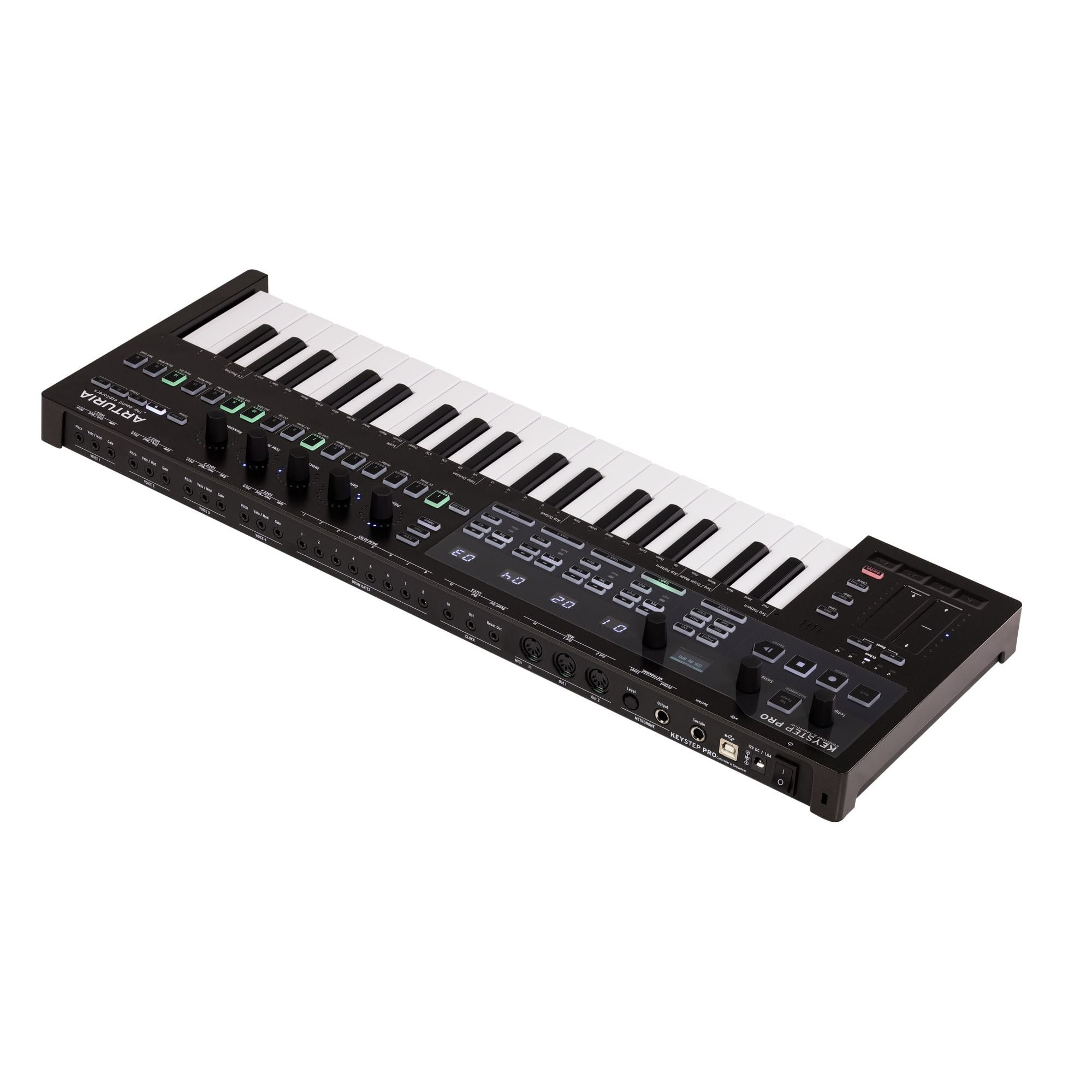 KeyStep має секвенсор і арпеджіатор. Ви можете записати вісім різних секвенцій, кожна з яких може містити до 64 кроків. Арпеджіатор генерує ноти на основі натиснутих Вами клавіш і відтворює їх у відповідності з налаштуванням режиму Arp.