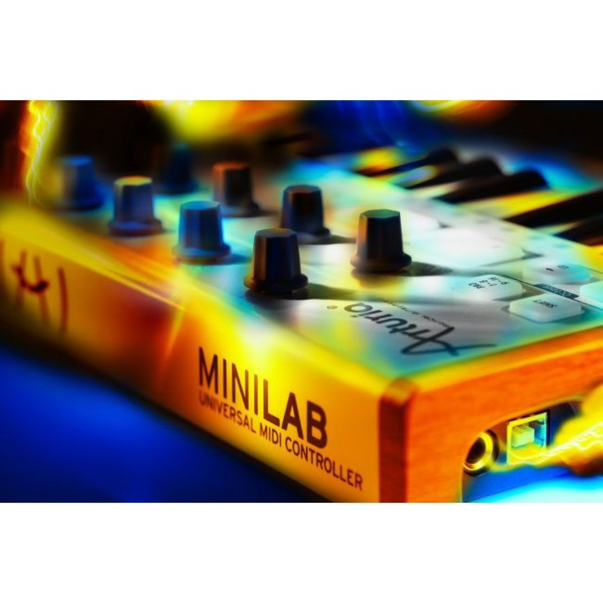 MiniLab є одним з найбільш добре оснащених компактних контролерів на ринку. Він народжений, щоб створювати приголомшливі нові мелодії, тому має чутливу до динаміки звуковидобування 25-нотну міні-клавіатуру і унікальні сенсори управління висотою і модуляцією звуку.