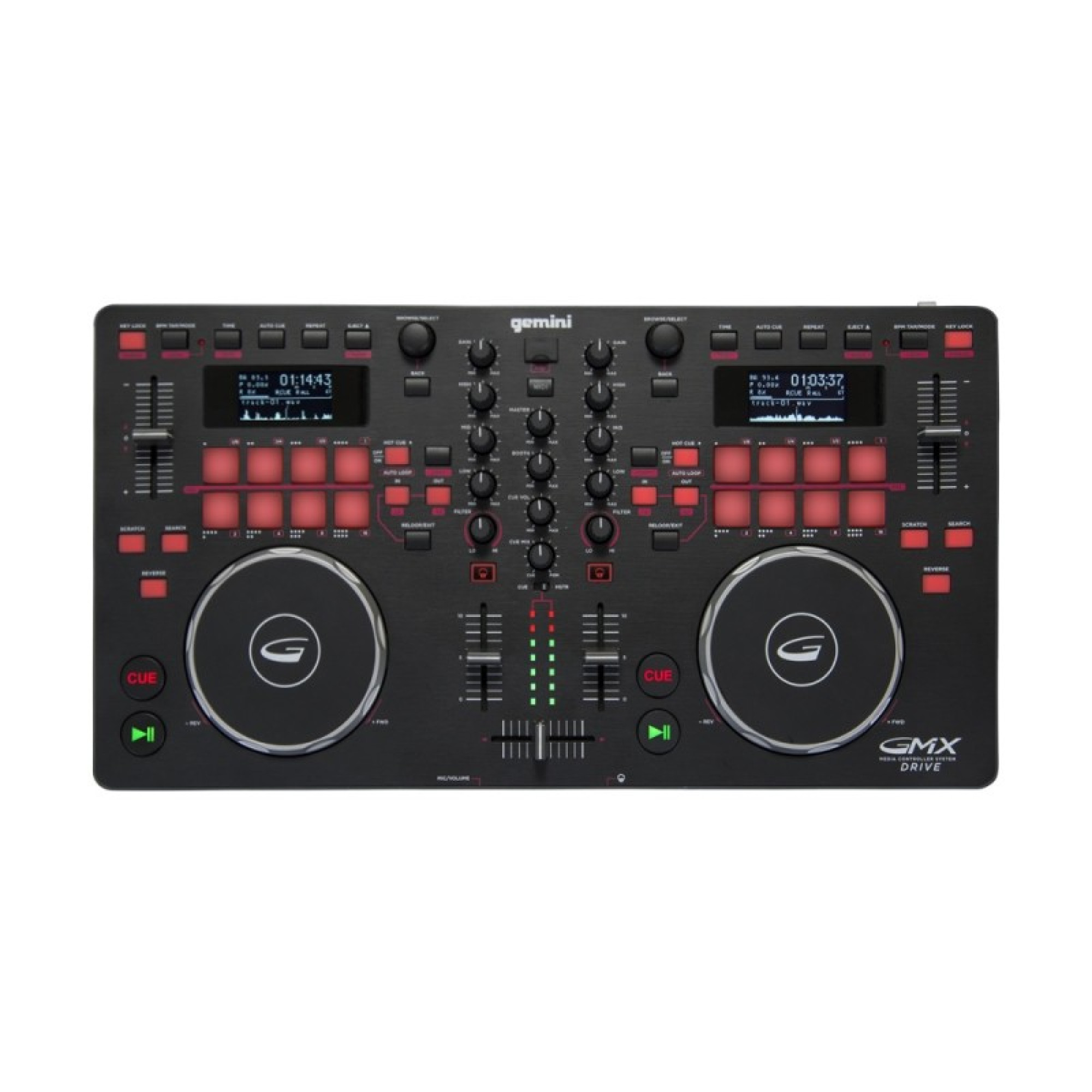 GMX DRIVE - це мультиформатний медіа контролер для тих DJ, які цінують можливість відтворення всіх форм цифрової музики. DJ може грати треки з одного USB приводу, з одного з CD-ромів, з лептопа, використовуючи його як універсальний MIDI контролер з встановленим програмним забезпеченням Virtual DJ або іншим додатком. Вісім великих педів на кожну деку плюс чутливі механічні джог диски оновленої конструкції забезпечують натхненне і інтуїтивно-зрозуміле управління, в той час як гладка робоча панель, контрастні дисплеї і кнопки з підсвічуванням функцій створюють GMX DRIVE суто професійний вигляд.