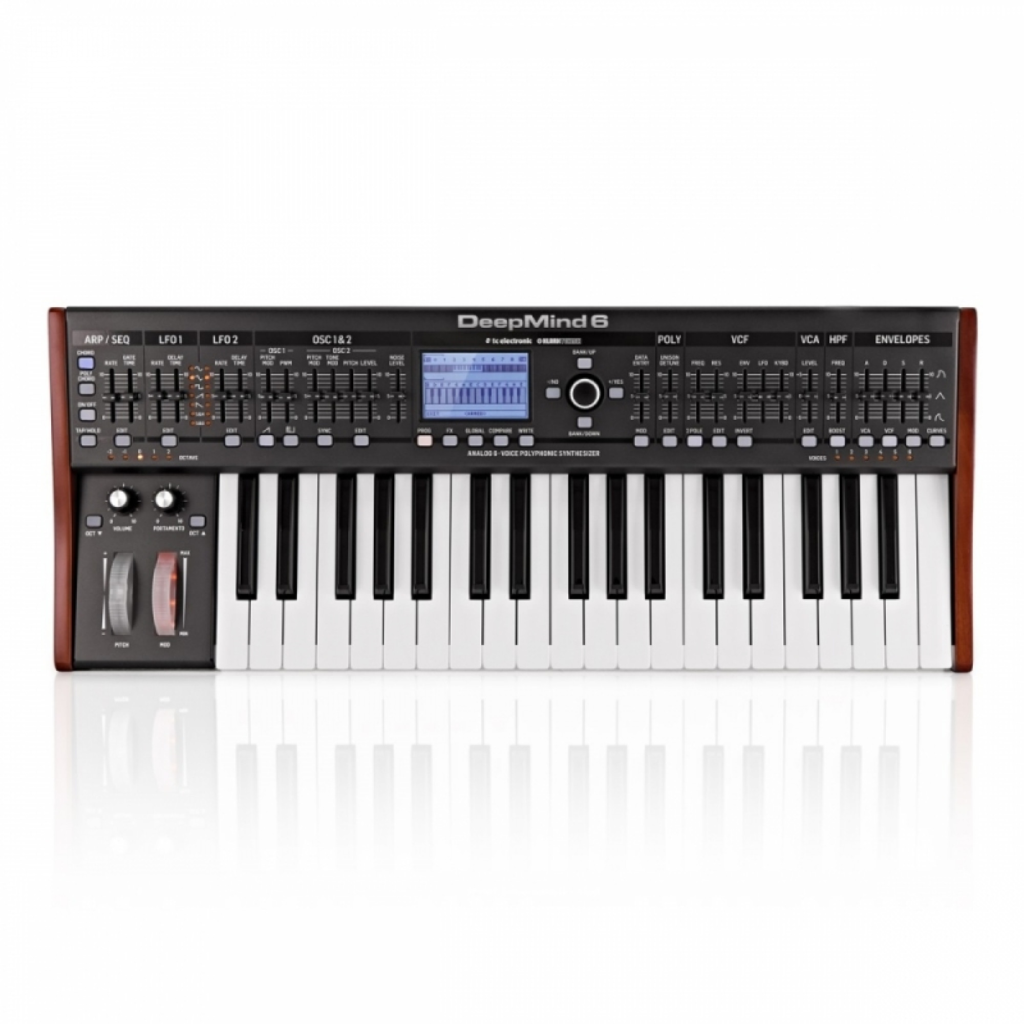- Класичний поліфонічний синтезатор з 6-ма аналоговими осциляторами, що мають щільний звук з вінтажним присмаком
