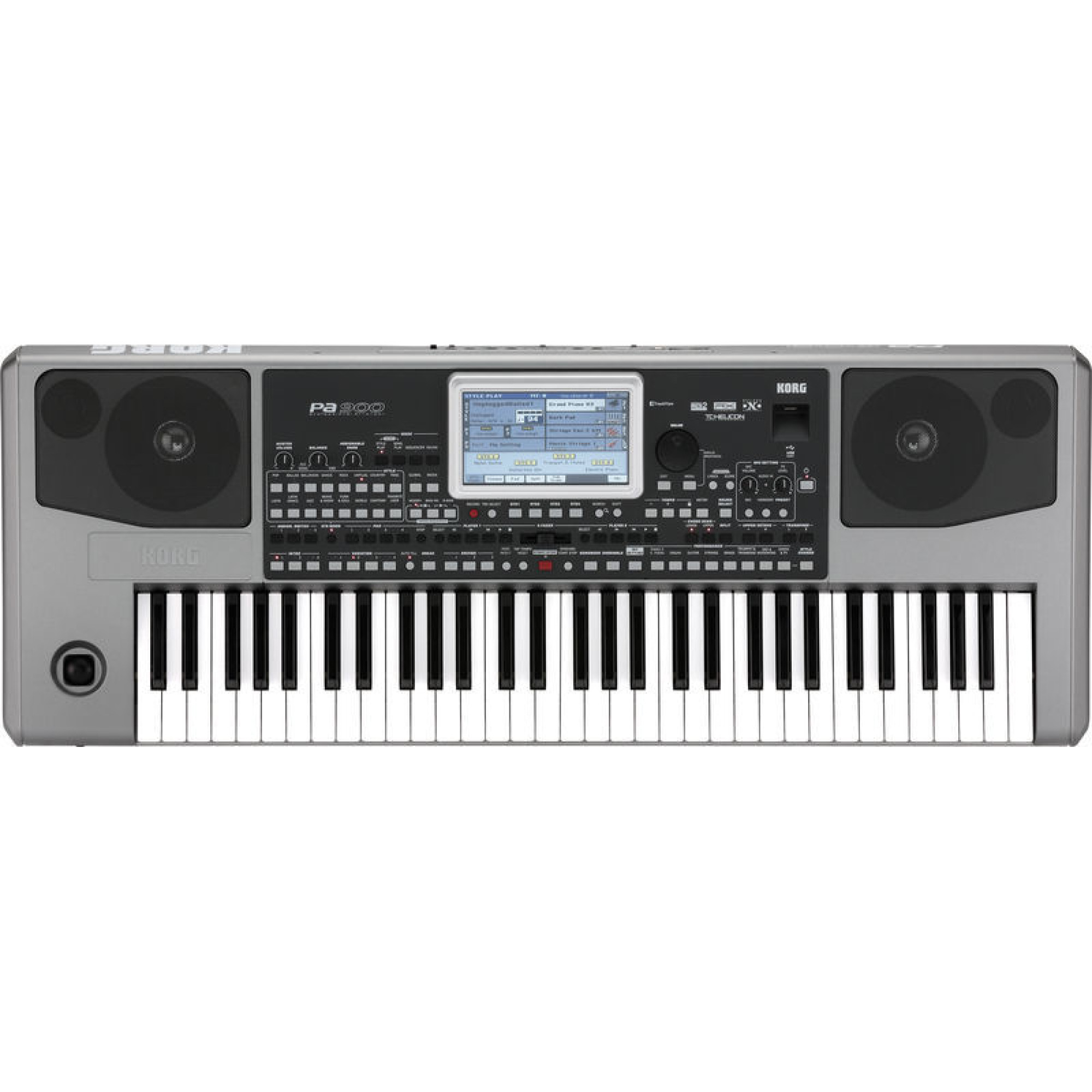 Генератор звуку Pa900 має подвоєним об'ємом звуковий пам'яті PCM в порівнянні з бестселером минулих років Pa900. Крім того, обсяг пам'яті для користувальницьких PCM-тембрів розширено до 192 Мб. Кількість доступних осередків стилів також було збільшено - тепер їх 1200, що забезпечує можливість зберігати в пам'яті інструменту абсолютно всі стилі, необхідні для роботи. Удосконалена система звуковідтворення володіє потужним і багатим звучанням. Додайте сюди такі вбудовані функції (втім, вже стали звичними для користувачів Korg PA), як вокальний гармонайзер TC Helicon, плеєр / рекордер MP3-файлів і подвійний секвенсор з кроссфейдером. Вперше в якості стандартної функції реалізований відеовихід - тепер ваші слухачі із задоволенням зможуть співати караоке, читаючи текст пісні з екрану. Всі ці фантастичні можливості Pa900 упаковані в міцний і одночасно витончений сріблястий корпус з бічними алюмінієвими панелями -на сцені він виглядає просто приголомшливо!