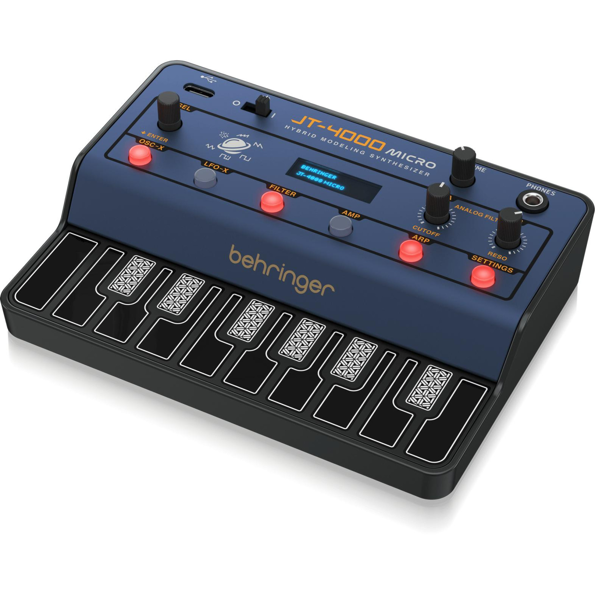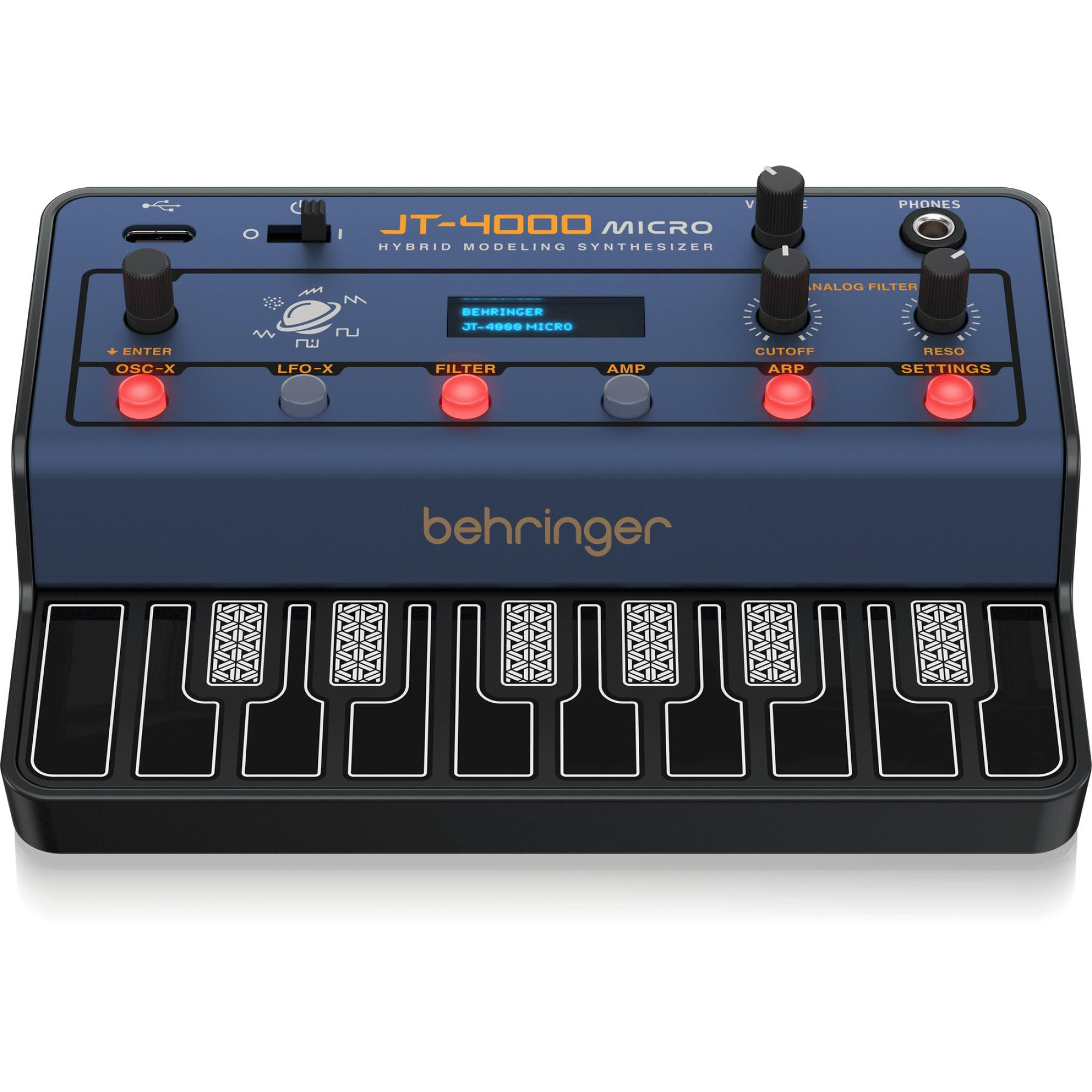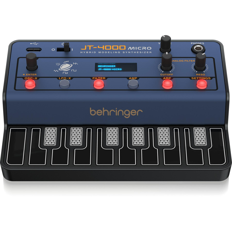 Синтезатор Behringer JT 4000 MICRO – це чотириголосний 4-голосий інструмент гібридного типу. Він оснащений двома аналоговими осциляторами (VCO) та двома низькочастотними осциляторами (LFO). Фільтрація звуку здійснюється за допомогою 12-дБ октавного низькочастотного фільтра (LPF). Інструмент має дві ADSR-огинаючі, що забезпечують гнучке налаштування звукових параметрів.