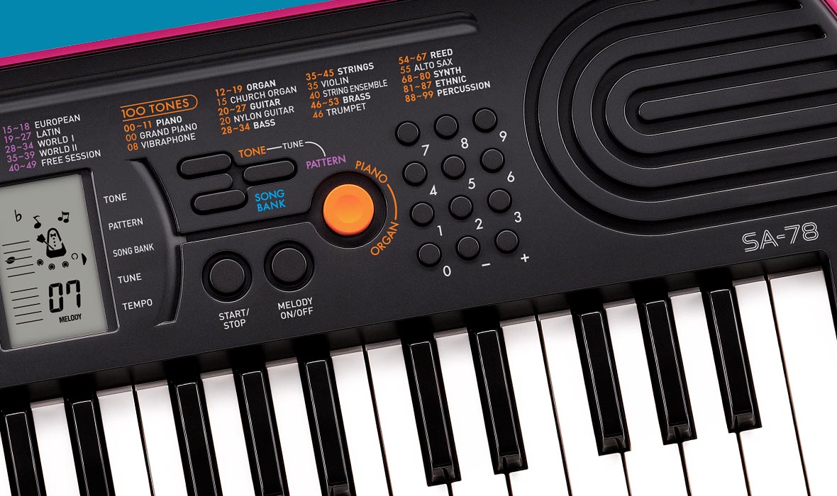 Модель SA-78 має 44 клавіші. Модель для початківців, але вже може похвалитися такими параметрами як РК дисплей, 100 тембрів, 50 стилів, вбудовані композиції для навчання, звуковий процесор з восьминотною поліфонією. Модель SA-78 стане помічником для музиканта початківця. Серед особливостей моделі SA-78 можна виділити кнопку перемикання фортепіано/орган. Вбудована система навчання з відключенням мелодійної лінії. Блок живлення в комплекті.