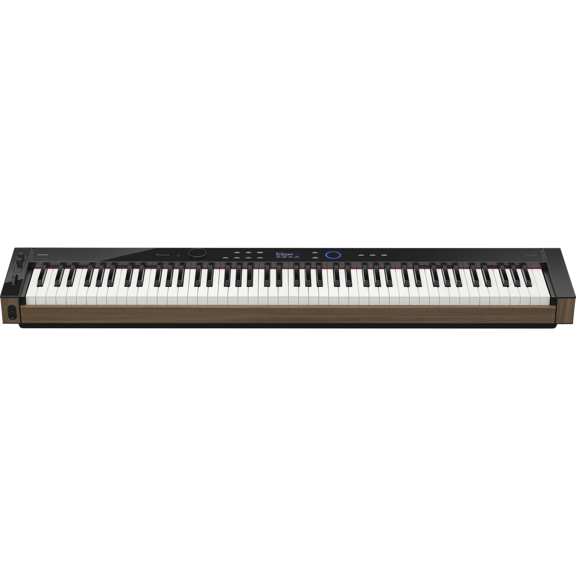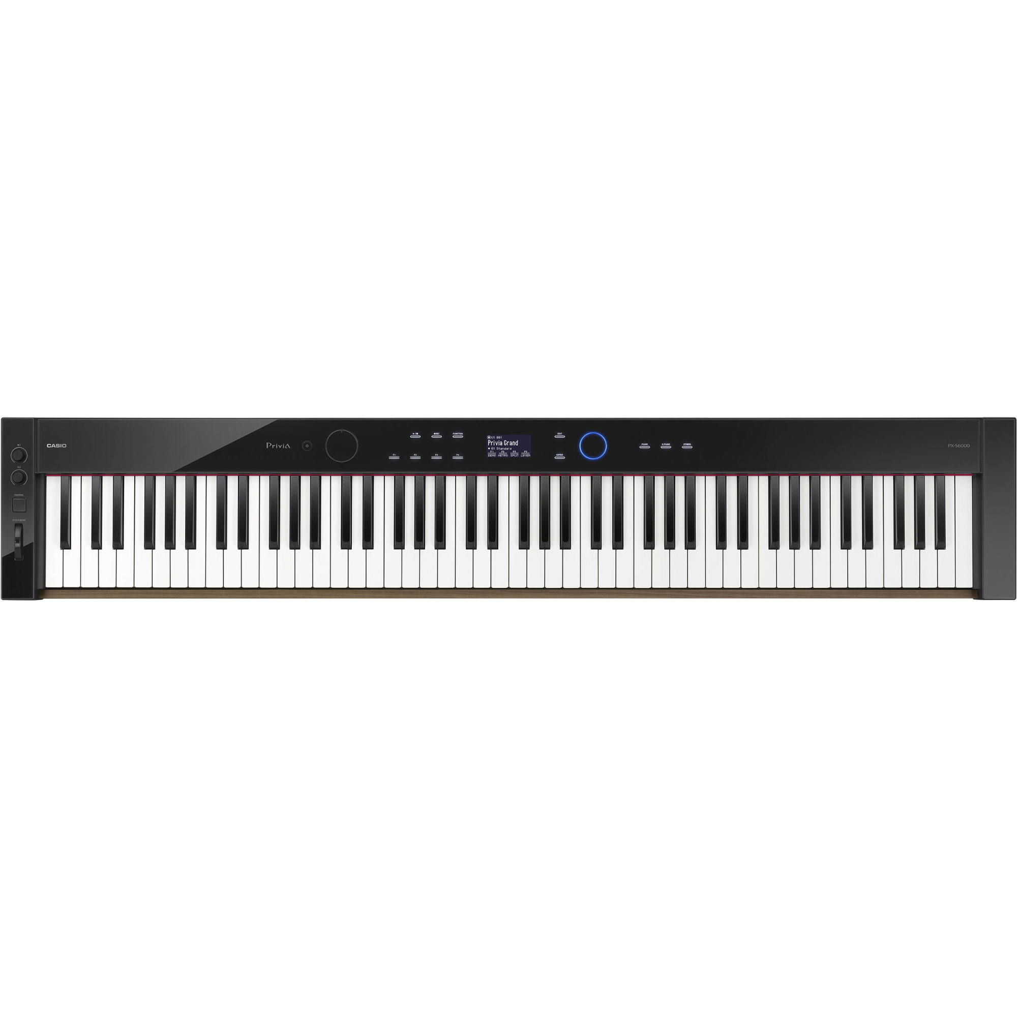 Верхня панель PX-S6000 – яскравий приклад елегантності та простоти. Сенсорне кільце, що забезпечує зручне прокручування і спрямоване введення, доповнює дисплей, що легко читається, з підсвічуванням, сенсорні елементи керування, які також підсвічуються, і колесо пітчбенду. Два регулятори забезпечують швидкий доступ до модифікації тембру і налаштувань DSP-ефектів, а чотири багатофункціональні контекстно-залежні кнопки дозволяють швидко отримати доступ до улюблених звуків і налаштувань.