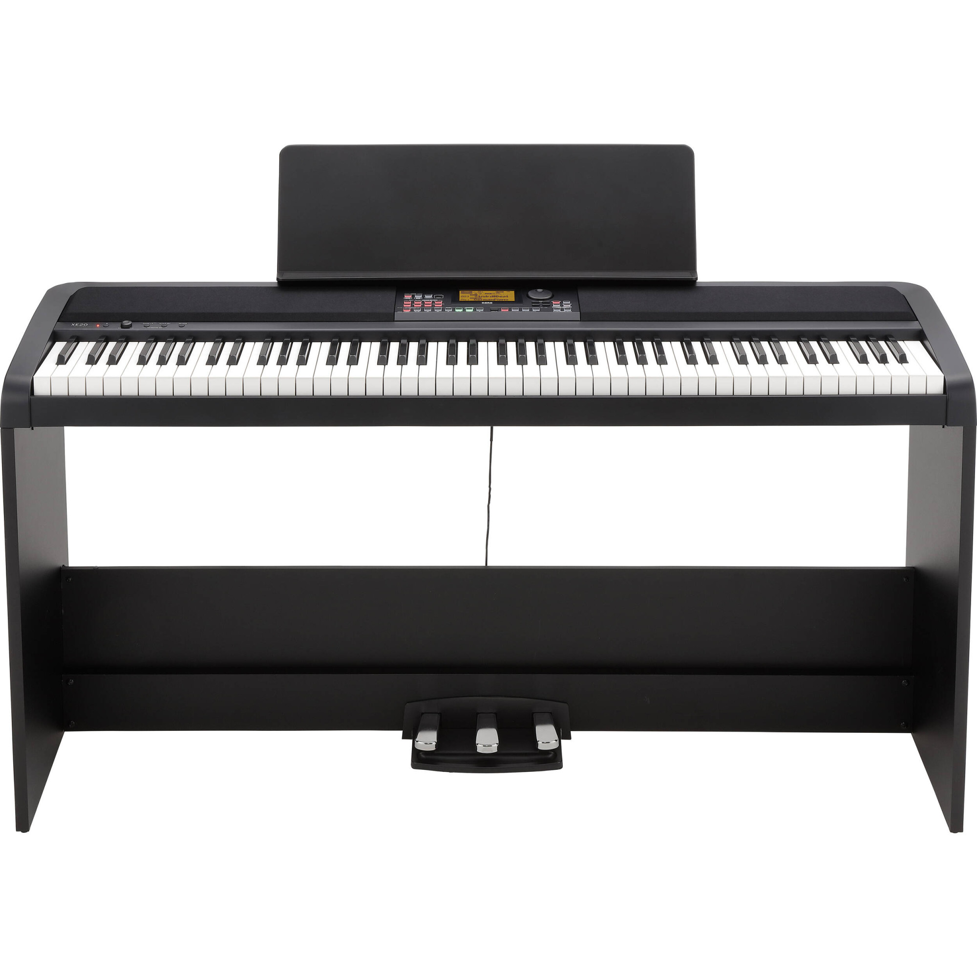 Музичне втілення вишуканості та технологічної досконалості, цифрове піаніно Korg XE20SP захоплюєсвоєю вишуканістю та музичною унікальністю. Комплект, який включає в себе 88-клавішне домашнє цифрове піаніно XE20, стійку, пюпітер та трипедальну систему. Виділяючись серед своєї категорії, KORG XE20SP має понад 700 звуків, зокрема, два повноцінних концертних звучання роялів з поліфонією 120 звуків. Німецький гранд рояль вражає насиченою тональністю, маючи чудовий верхній регістр і деталізовані низькі частоти. Італійський рояль славиться багатим резонансом та чутливістю до нюансів манери гри піаніста. Ще 64 звуки відводиться на інші інструментальні семпли, записані з реальних акустичних та цифрових джерел можна використовувати як частину автоакомпанементу, або відтворювати їх наживо. Збалансована і філігранна молоточкова клавіатура, забезпечує природну реалістичну та легку гру на піаніно, навіть на вищих октавах. Завдяки інноваційній функції автоакомпанемента, XE20SP може автоматично створювати повноцінний акомпанемент, адаптуючись до поточного стилю гри. Завдяки понад 280 стилям, кожен із яких має 4 варіації, Ви можете легко імпровізвати, експериментувати та створювати унікальні композиції. Нова активна акустична система XE20SP забезпечує потужне та чітке відтворення навіть при використанні автоакомпанемента, забезпечуючи чудовий баланс у всьому звуковому спектрі. Спеціальний софт, який постачається разом із XE20SP, надає широкі можливості для практики та творчості. Відзначена нагородами програма навчальна Skoove допомагає у покращенні майстерності: вона має понад 10 курсів та 300 пісень, що оновлюються за вашими навчиками. У комплект включено три місяці безкоштовногокористування програмою. Мобільні додатки для iOS KORG Module та KORG Gadget 2 Le розширюють арсенал звуків ( як класичних так і сучасних) та функціонал, забезпечуючи справжню експертність у музичному створенні.