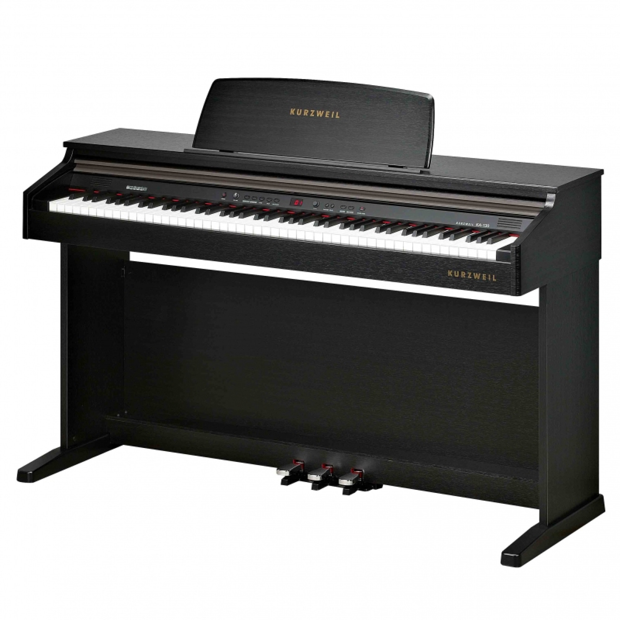 Три стандартні педалі: Sustain (з ефектом напівнатиснення), Sostenuto, Soft.