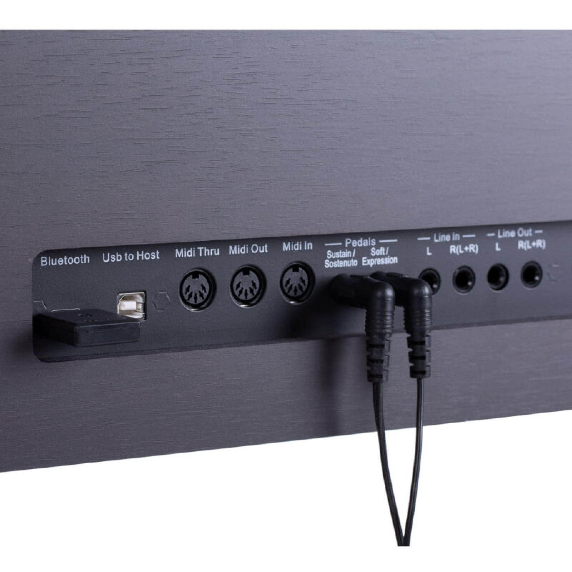 Роз'єми:  Стереовихід, стереовхід, USB, входи педалей 1 і 2, живлення 12В постійного струму Роз'єм Bluetooth, Л/П виходи, Л/П входи, USB порт, роз'єм Midi, входи педалей 1 і 2, живлення 12В постійного струму Роз'єм Bluetooth, Л/П виходи, Л/П входи, USB порт, роз'єм Midi, входи педалей 1 і 2, живлення 12В постійного струму