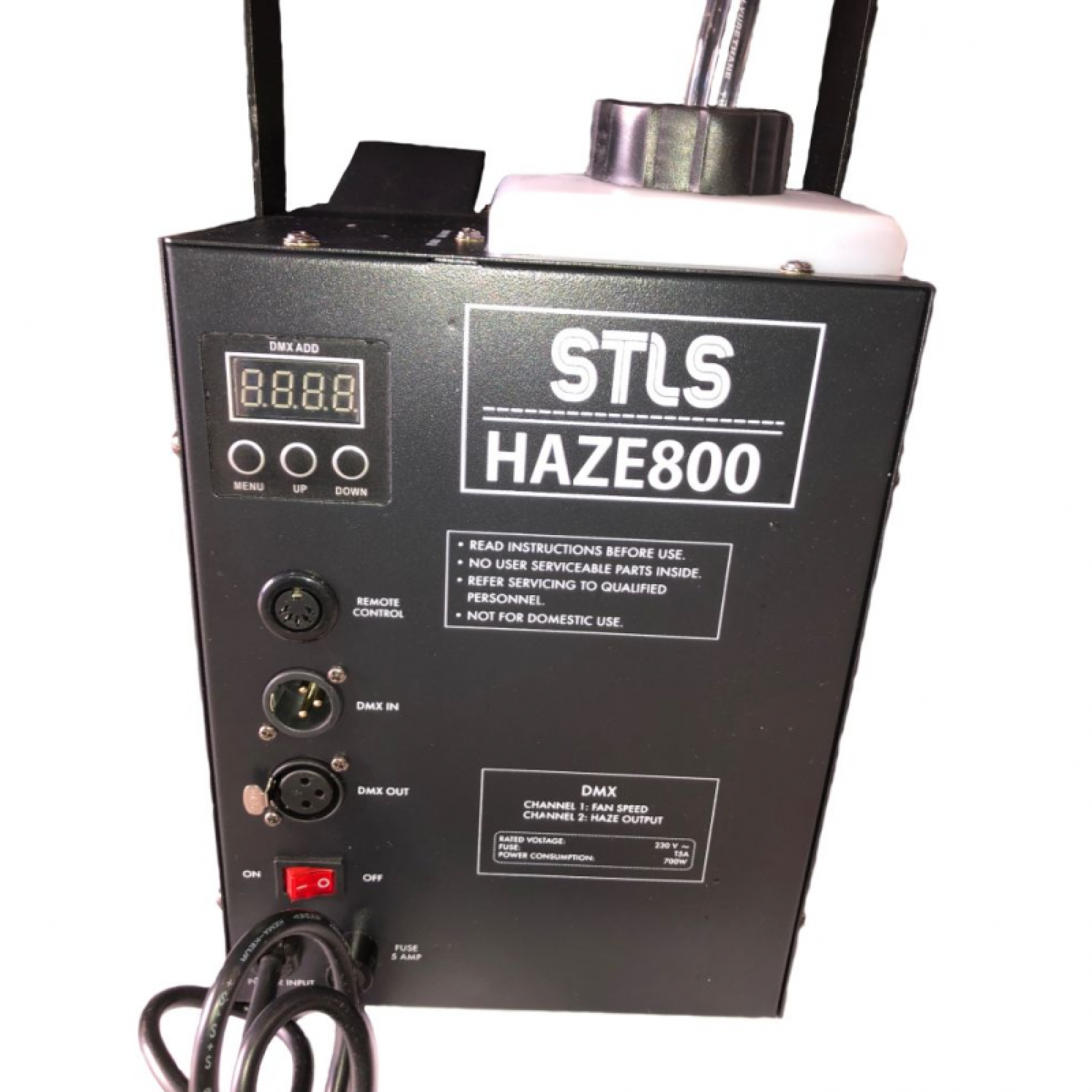 Представлений хейзер STLS HAZE 800 є генератором туману, який використовується для створення рівномірної димової завіси на сцені або в приміщенні і її підтримки на протязі тривалого часу. Працює генератор з рідиною на водній основі.