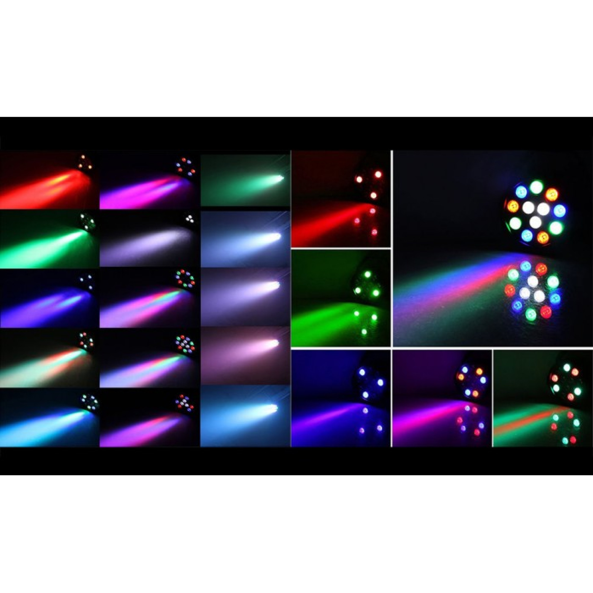 - Джерело світла: 12х 1 Вт (червоний 3 шт, зелений 3 шт, Синій 3шт, білий 3шт)