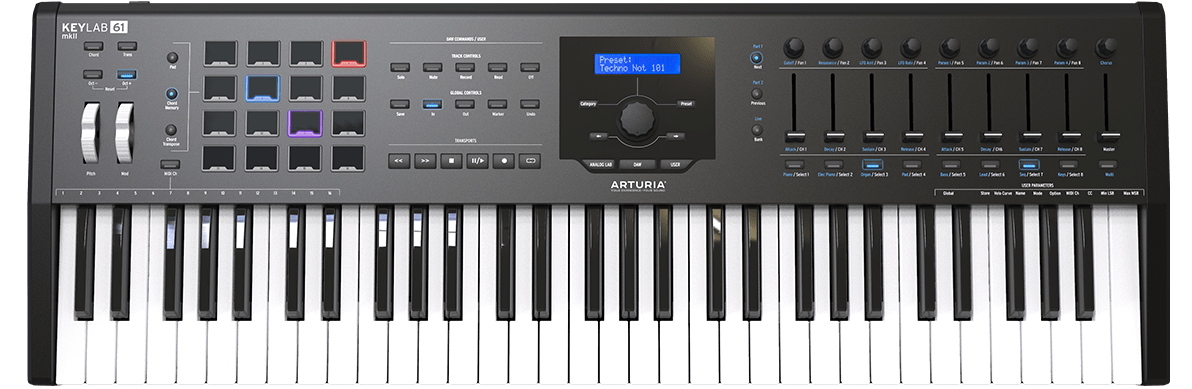 До цієї ж категорії відносяться контролери, які мають основні клавіші і великий набір керуючих інструментів, що дозволяють вирішувати безліч професійних завдань. Простіший, але затребуваний інструмент – міді-клавіатури, які знаходяться на середніх позиціях між названими типами пристроїв.