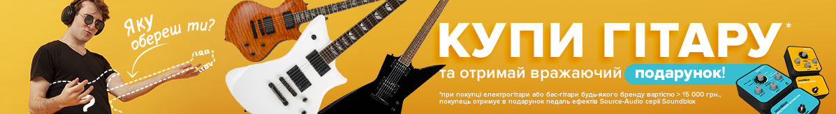 Саме в цей момент на допомогу Вам радо прийде "Музикант.укр"! Ми з задоволенням повідомляємо про старт неймовірної акції! При купівлі будь-якої електро або бас-гітари відомих брендів Fender, Fernandes, Gibson, Burny, Epiphone, Lag, ESP, Jackson, Ibanez, AXL, B.C. Rich, Cort, Eko, Friedman, Fujigen, G&L, Godin, Gretsch, Heritage, Kramer, LTD, PRS, Schecter, Universum Guitars, Vintage, Yamaha та інших вартістю понад 15 000 грн*, Ви отримуєте в подарунок - педаль ефектів Source Audio серії Soundblox на вибір. Ця на вигляд непомітна маленька коробочка призначена для того, щоб до невпізнання змінити і наповнити Ваш арсенал фантастичними новими можливостями і засобами для творчості.