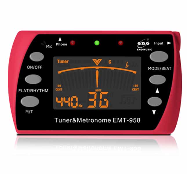 Eno EMT-958 — незамінний аксесуар для початківців та професійних музикантів, що містить в собі три пристрої: тюнер, метроном і генератор тональних сигналів.