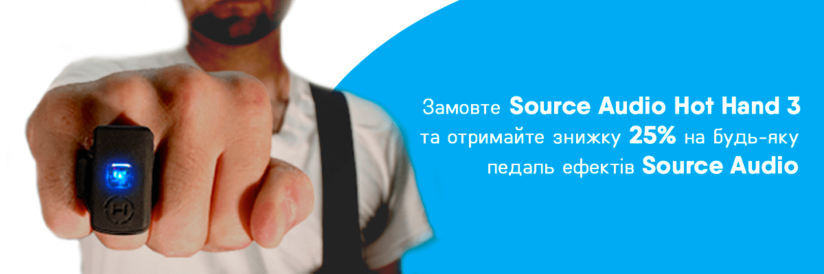 Замовляйте на сайті test.musician.ua або в мережі роздрібних магазинів «Музикант» універсальний бездротовий контролер Source Audio Hot Hand 3 – та отримайте можливість придбати будь-яку педаль ефектів «Source Audio» зі знижкою 25%!