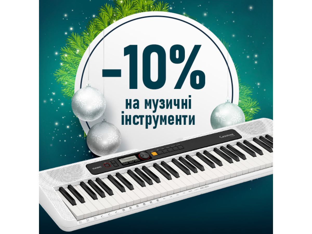 CASIO випромінює музичну гармонію та радість, представляючи надзвичайно вигідну пропозицію на честь свята Нового Року. Відтепер, й до 2 січня 2024 року, компанія пропонує всім любителям музики та творчості насолоджуватися знижкою у 10% на всі клавішні інструменти від CASIO, а також на аксесуари до них.