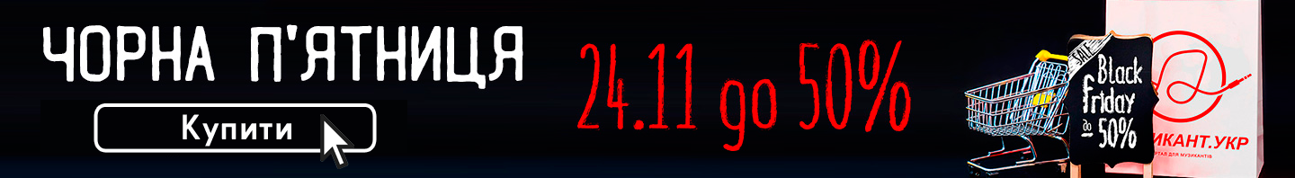 Так, магазин музичних інструментів теж влаштовує чорну п’ятницю. А у нас на цей раз вона буде не просто чорна, а чорнюща. Отож, намотуйте собі на вус кожне наступне слово, бо тут буде найважливіше про нашу п’ятницю.