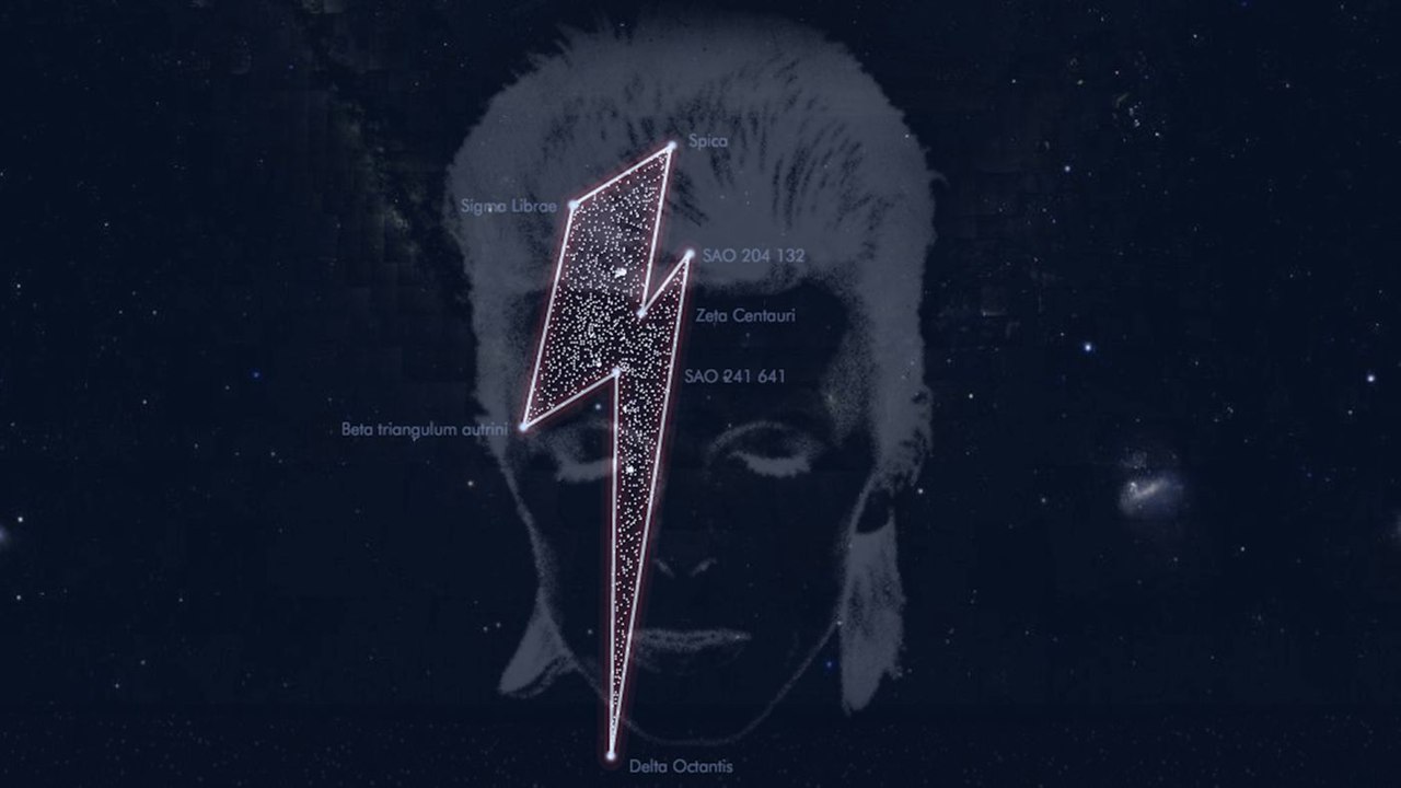 «Було непросто вибрати відповідні зірки. Studio Brussels попросили нас знайти місце для Боуї і пам'яті про нього в галактиці. Ми вибрали сім зірок - Сигма Ваг, Спіка, Альфа Віргініюс, Зета Центавра, SAA 204 132 і Бета Сигма Октантис Триангули Аустралис поблизу Марса. Сузір'я повторює форму легендарної блискавки. Положення зірок було зафіксовано в момент смерті музиканта», - розповіли в обсерваторії.