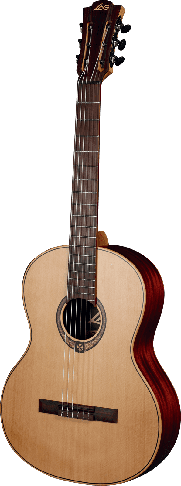 Класична гітара Lag Occitania OC70 — це повнорозмірна гітара, виготовлена з високоякісних матеріалів: верхня дека виконана з масиву ялини Енгельмана, що надає звуку глибини, об’єму та природної яскравості, а нижня дека і обичайки зроблені з цінного червоного дерева махагоні, що підкреслює теплі середні частоти та насиченість звучання. Гриф гітари з окоуме, а накладка на гриф і бридж — з коричневого дерева BrankoWood, що забезпечує комфортну гру і довговічність інструменту. Особливою перевагою є поріжки з графіту — матеріалу, який знижує втрати звуку та підтримує стабільний натяг струн.