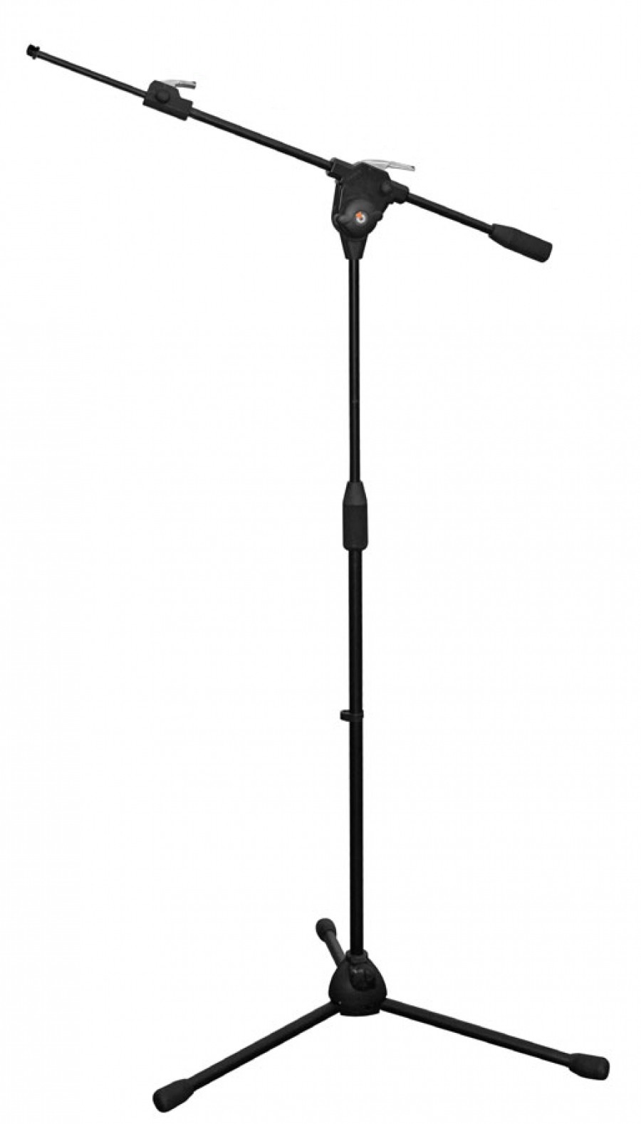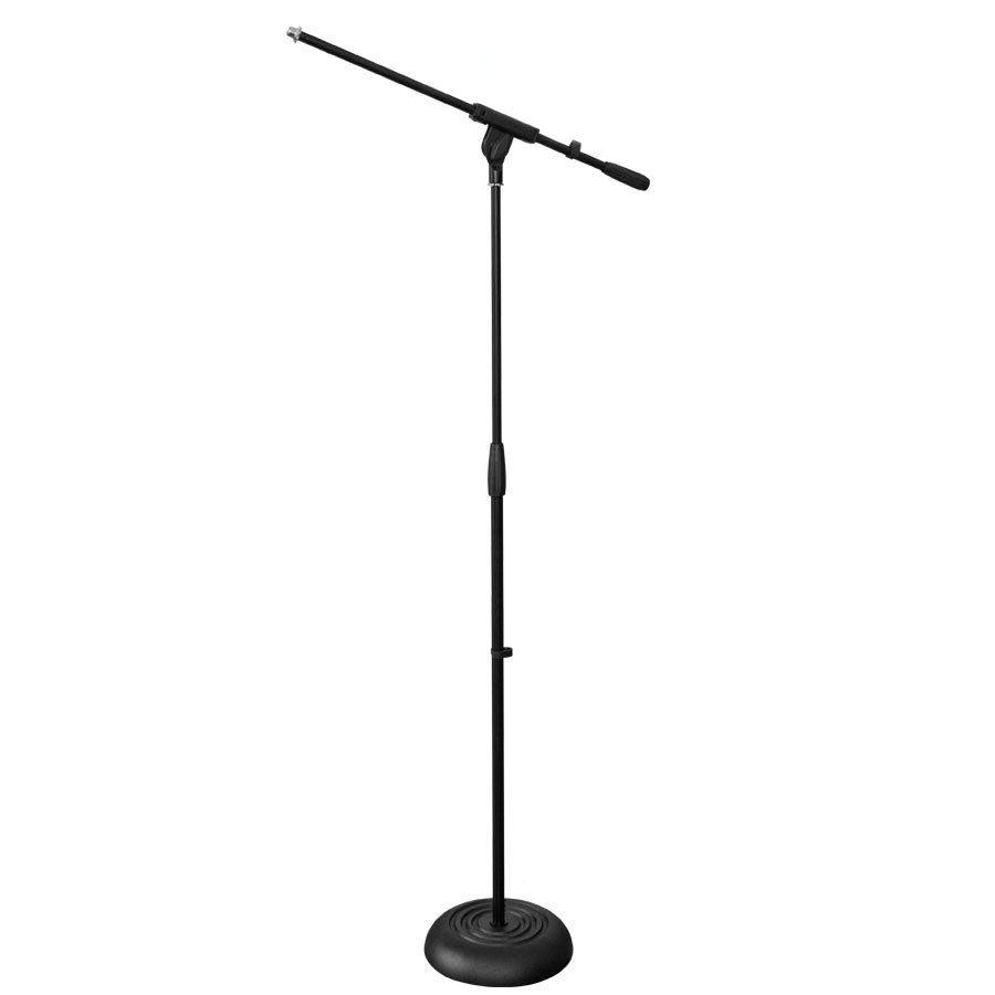 Мікрофонна стійка "журавель" з круглою базою. Металеве з'єднання і база. Можливість налаштування за висотою. Колір: чорний.