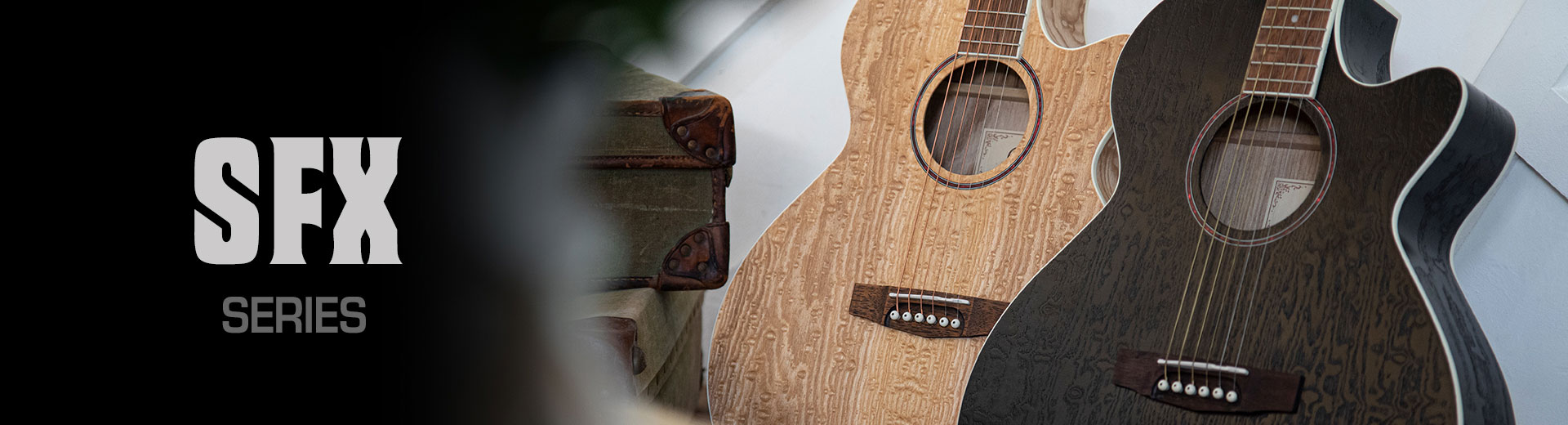 Акустичні гітари серії SFX втілюють бачення Cort на те, яким повинен бути сучасний сценічний інструмент. Корпус зі зменшеною глибиною з вирізом для зручного доступу до верхніх ладів, ергономічним грифом зі швидкісним V-профілем для максимального комфорту при грі, великі jumbo лади і функціональна електроніка - SFX стане вірним супутником сучасного гітариста.