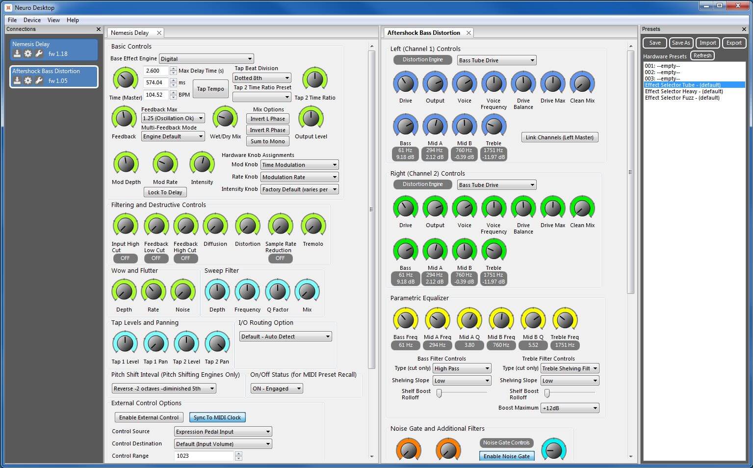 Neuro Desktop Editor – це потужний інструмент для редагування програмного забезпечення. Він дозволяє здійснювати глибоке налаштування широкого переліку параметрів основних та додаткових ефектів Nemesis Delay, L.A. Lady Overdrive, Kingmaker Fuzz і AfterShock Bass Distortion. Додаток доступний для вільного завантаження під Mac и Windows – достатньо просто перейти на сторінку завантаження на офіційному сайті і завантажити його.