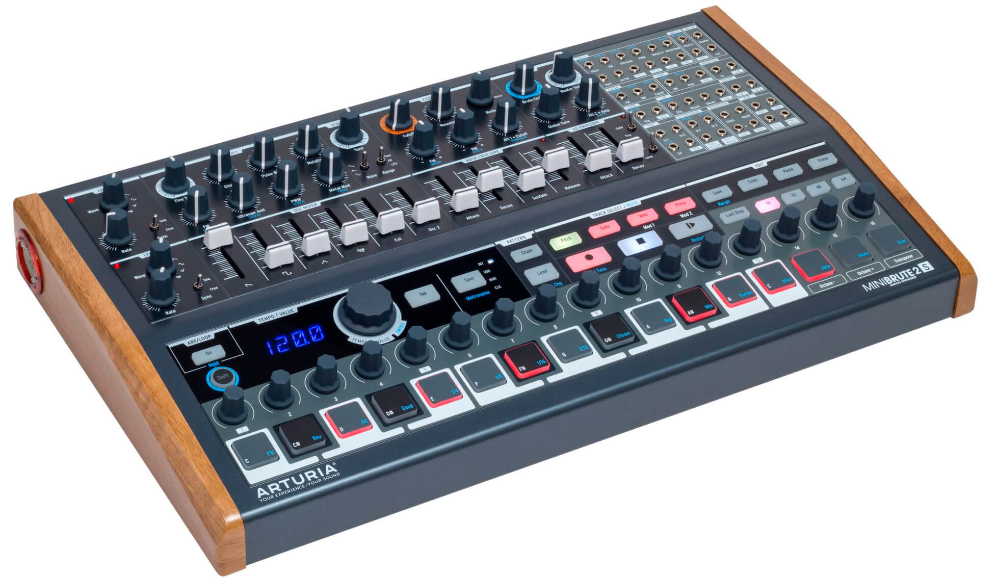 Комбінуючи традиційні для Arturia зручні, інтуїтивно зрозумілі секвенсери з можливостями синтезу нових звуків і розширюючи їх цілим світом модульного функціоналу Eurorack за допомогою патч-бей-матриці, MiniBrute2S додасть Вашій музиці Brute Factor™.