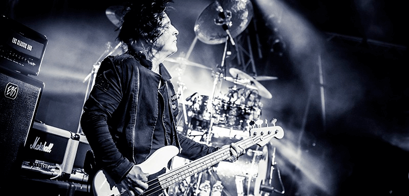 Роббі Крейн використовує підсилювачі EBS Classic 500, кабінети ClassicLine 810 і численні педалі ефектів EBS.