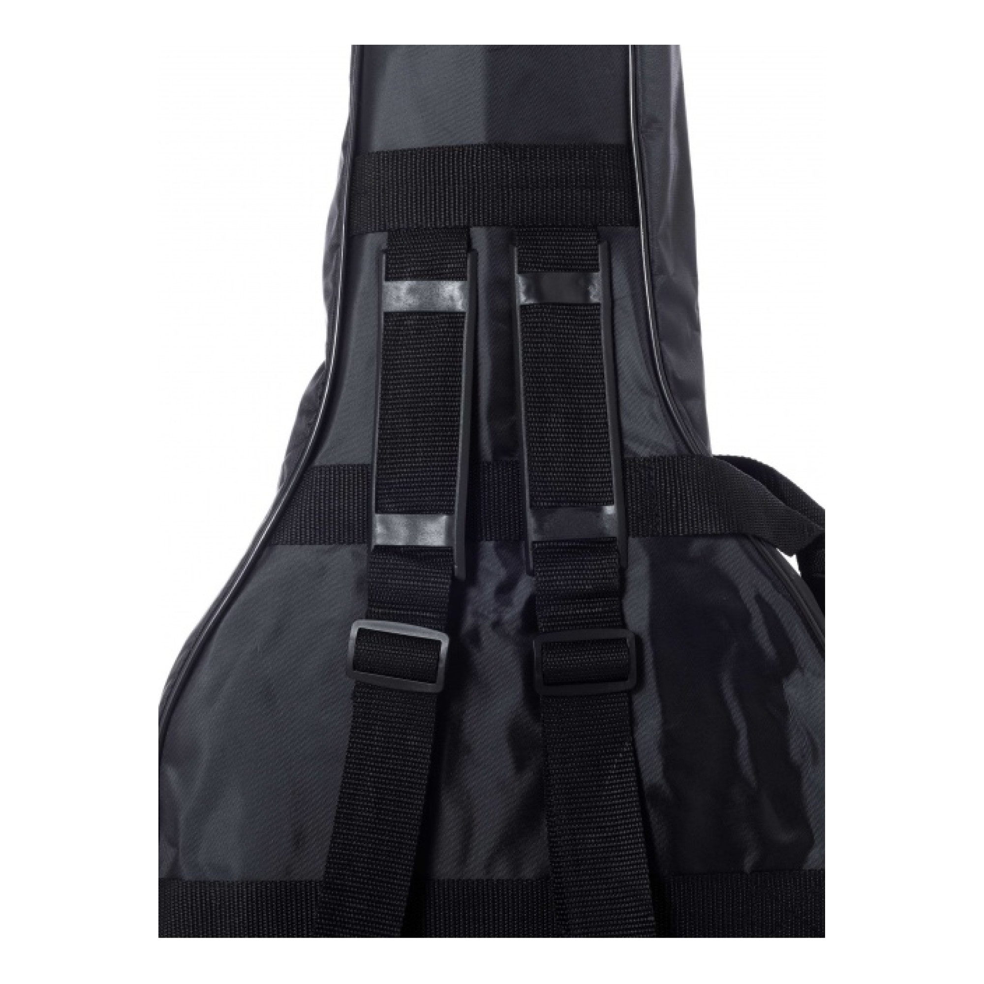Чехол для акустической гитары, серия Young Line. Изготовлен из прочного нейлона 420D, все стыки ткани усилены бортиками из ПВХ. Есть большой передний внешний карман для аксессуаров. Замок-молния специально прошит, чтобы не рвался нейлон. Для переноски чехол оснащен боковой ручкой и регулируемыми заплечными ремнями. Цвет: черный.