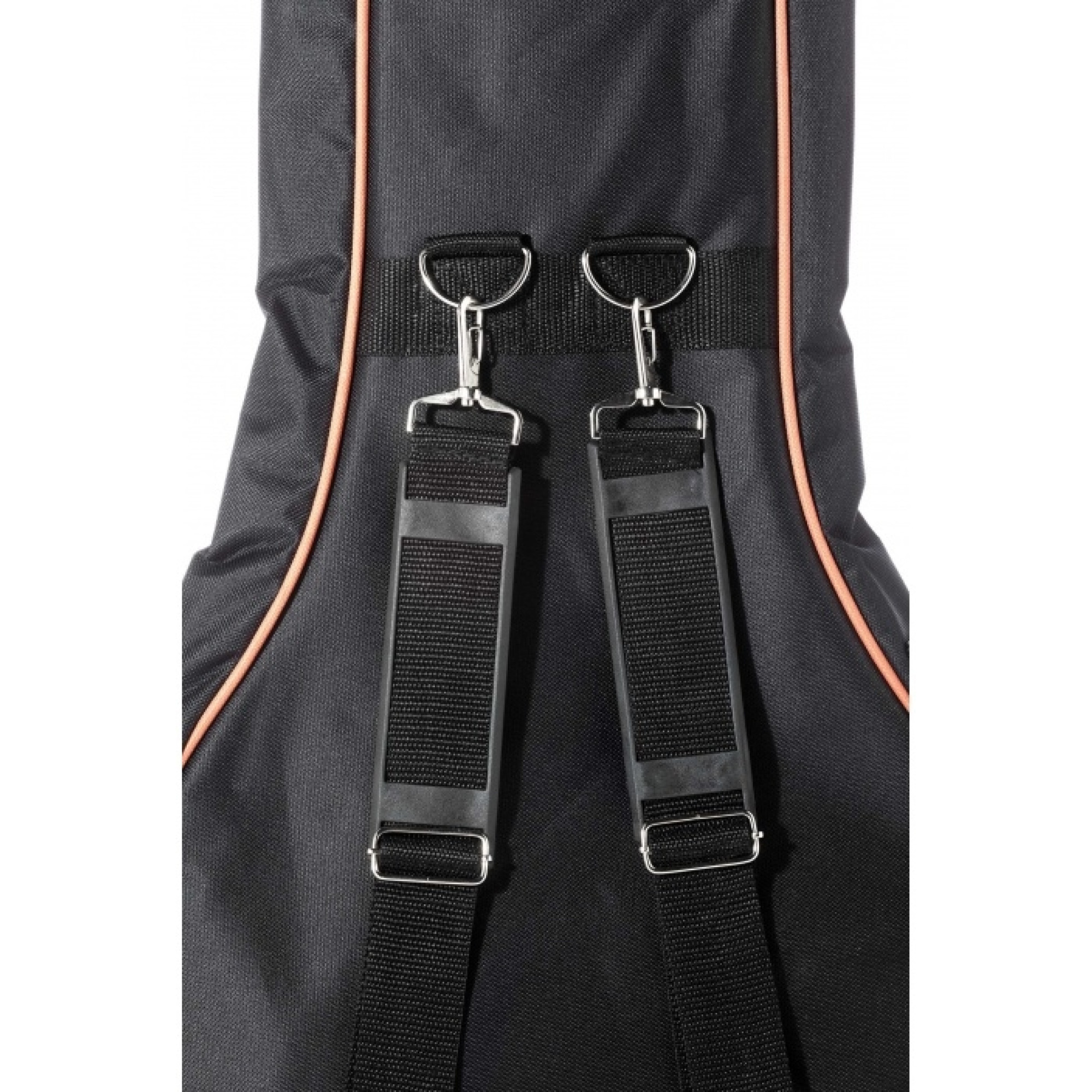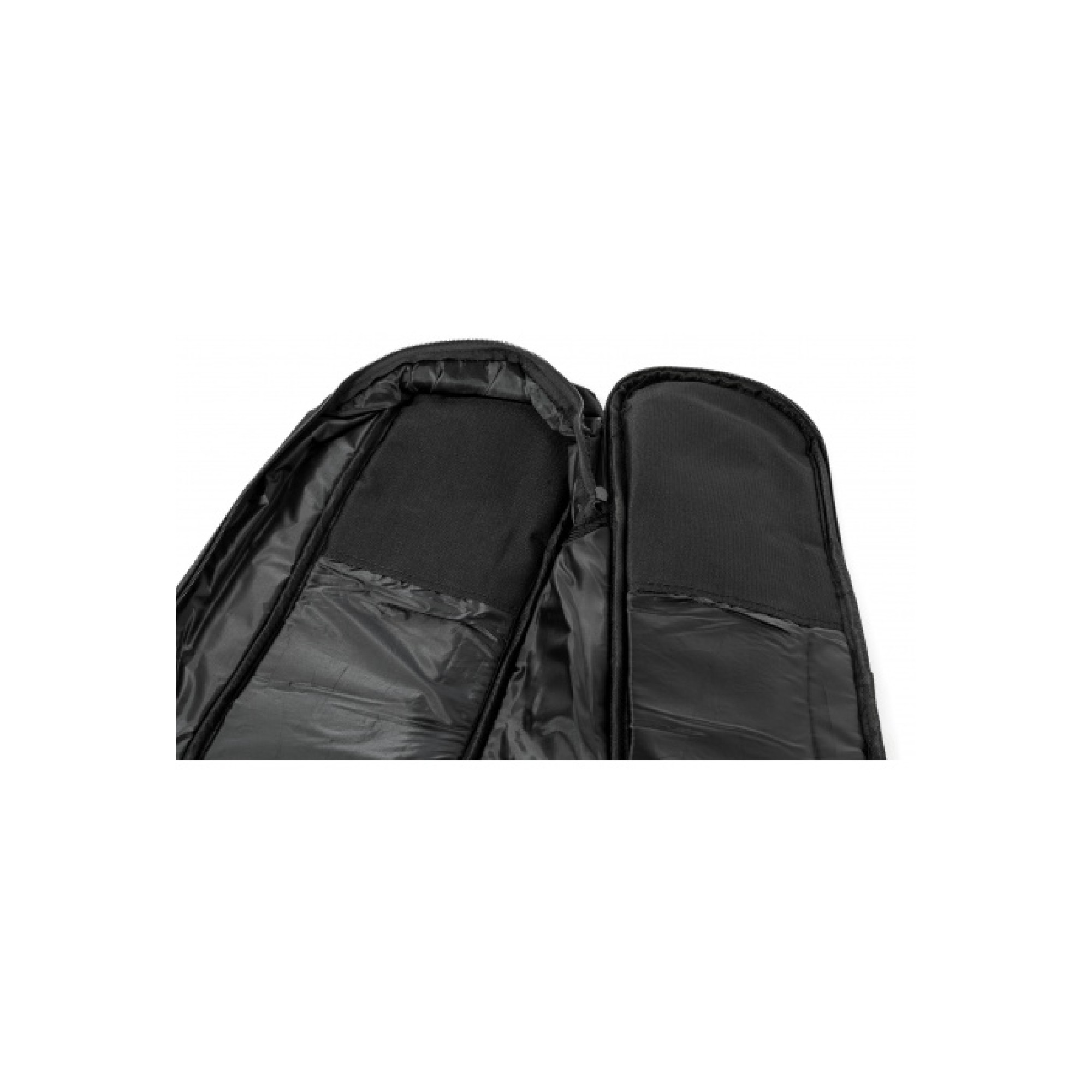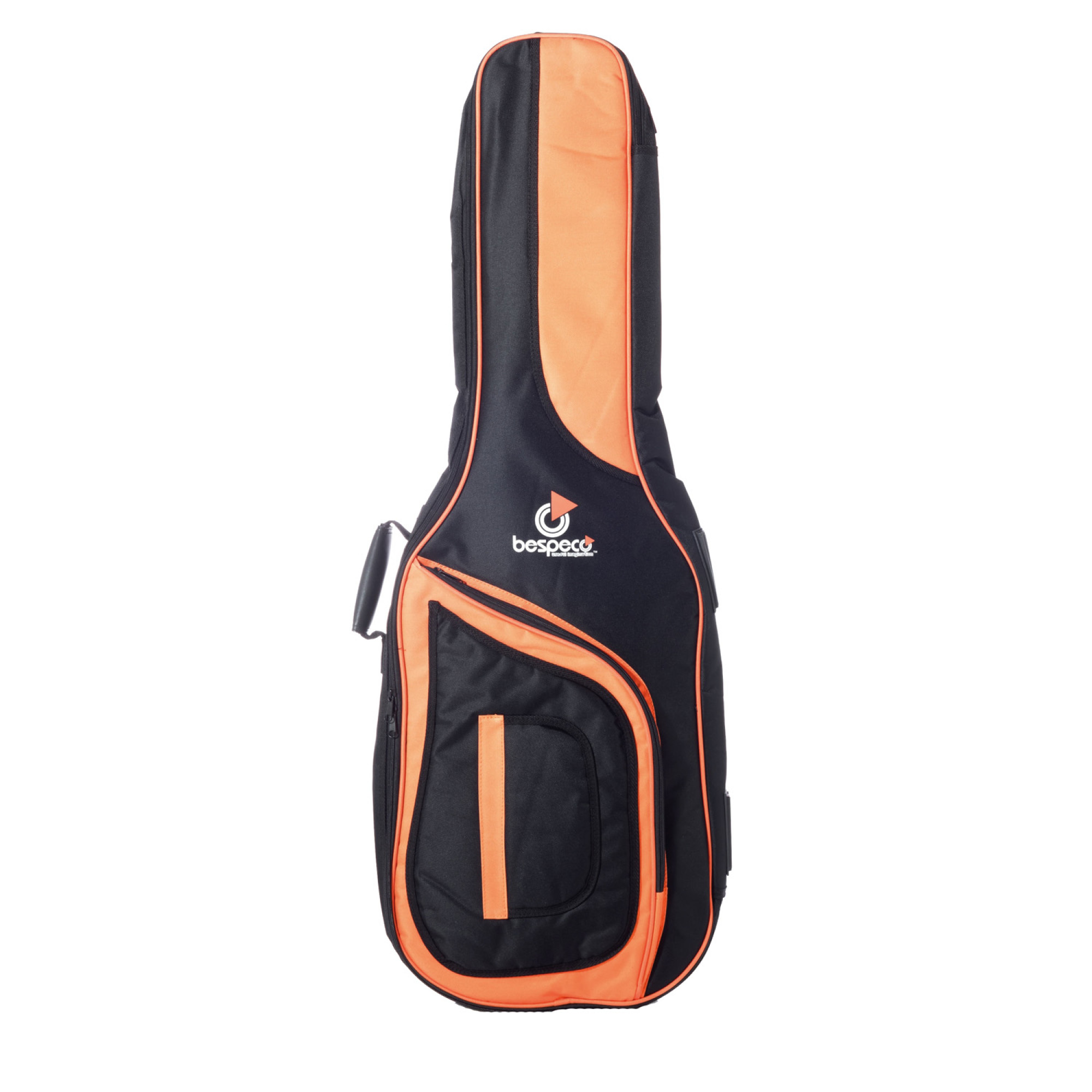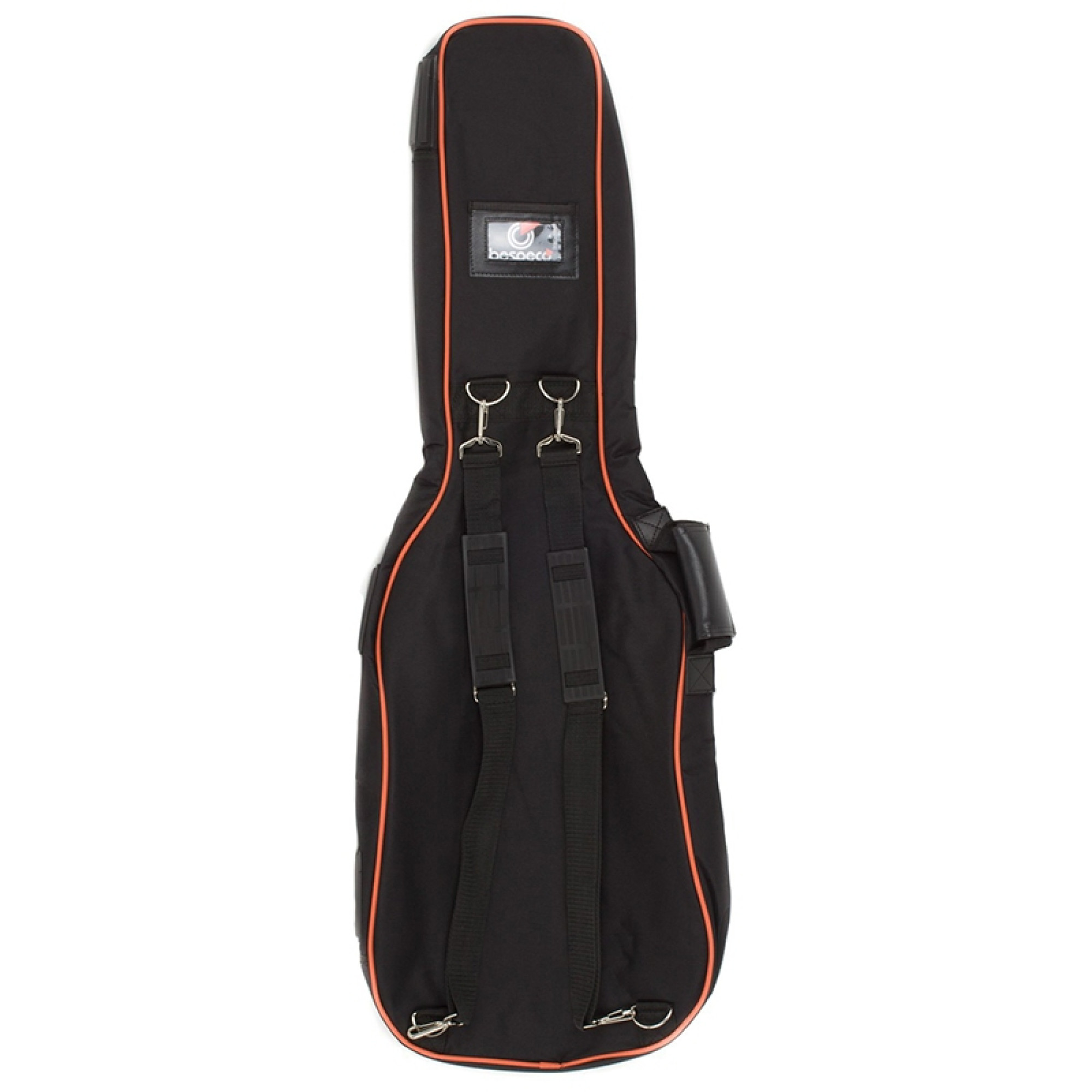 Внутренняя часть чехла усилена для защиты струн и бриджа. По краям установлены резиновые противоударные накладки. Цвет: черный с оранжевым.