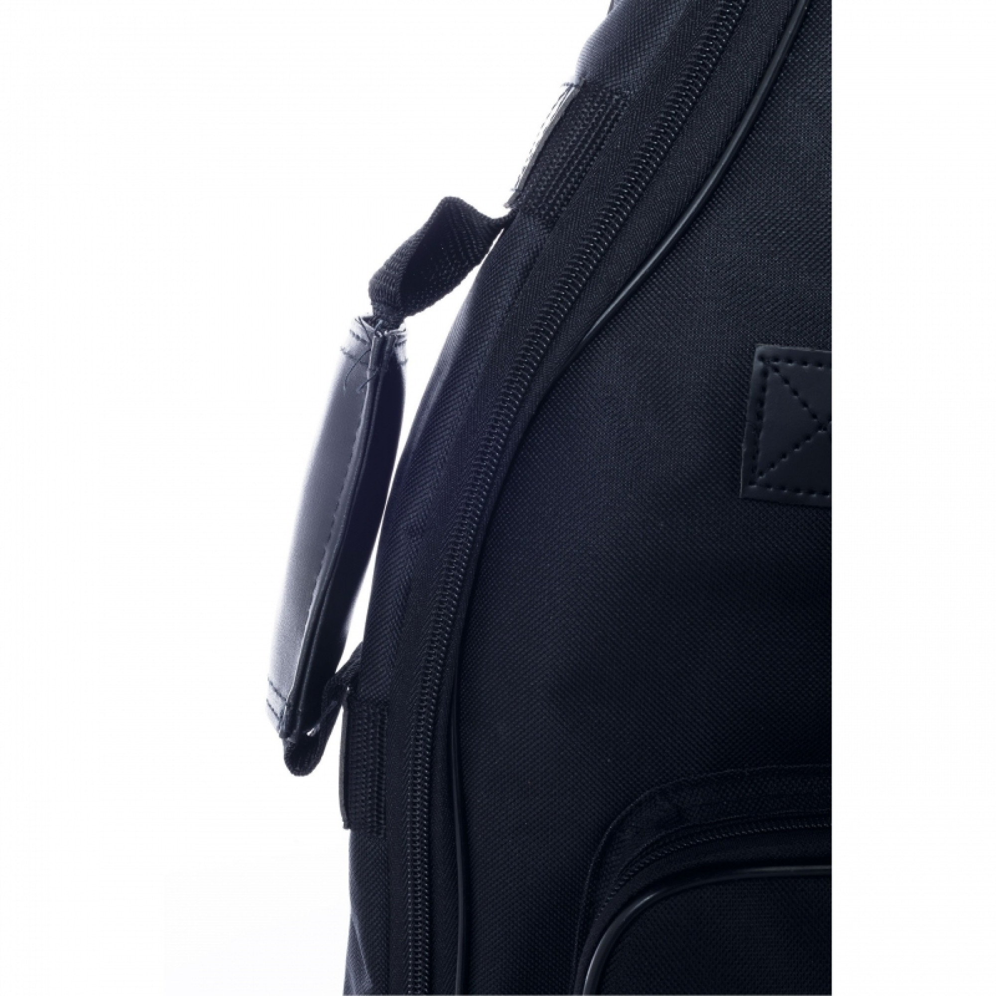 Чехол для классической гитары, серия Borso Training Line, изготовлен из прочного нейлона "Oxford cloth 600D" с усиленными с помощью ПВХ швами. Толщина утеплителя составляет 10 мм. Для аксессуаров предусмотрены 2 больших кармана, сверху и снизу. Боковая ручка для переноски оснащена мягкой накладкой, есть удобные регулируемые наплечные ремни. Сзади чехла есть специальная петля для подвешивания.
