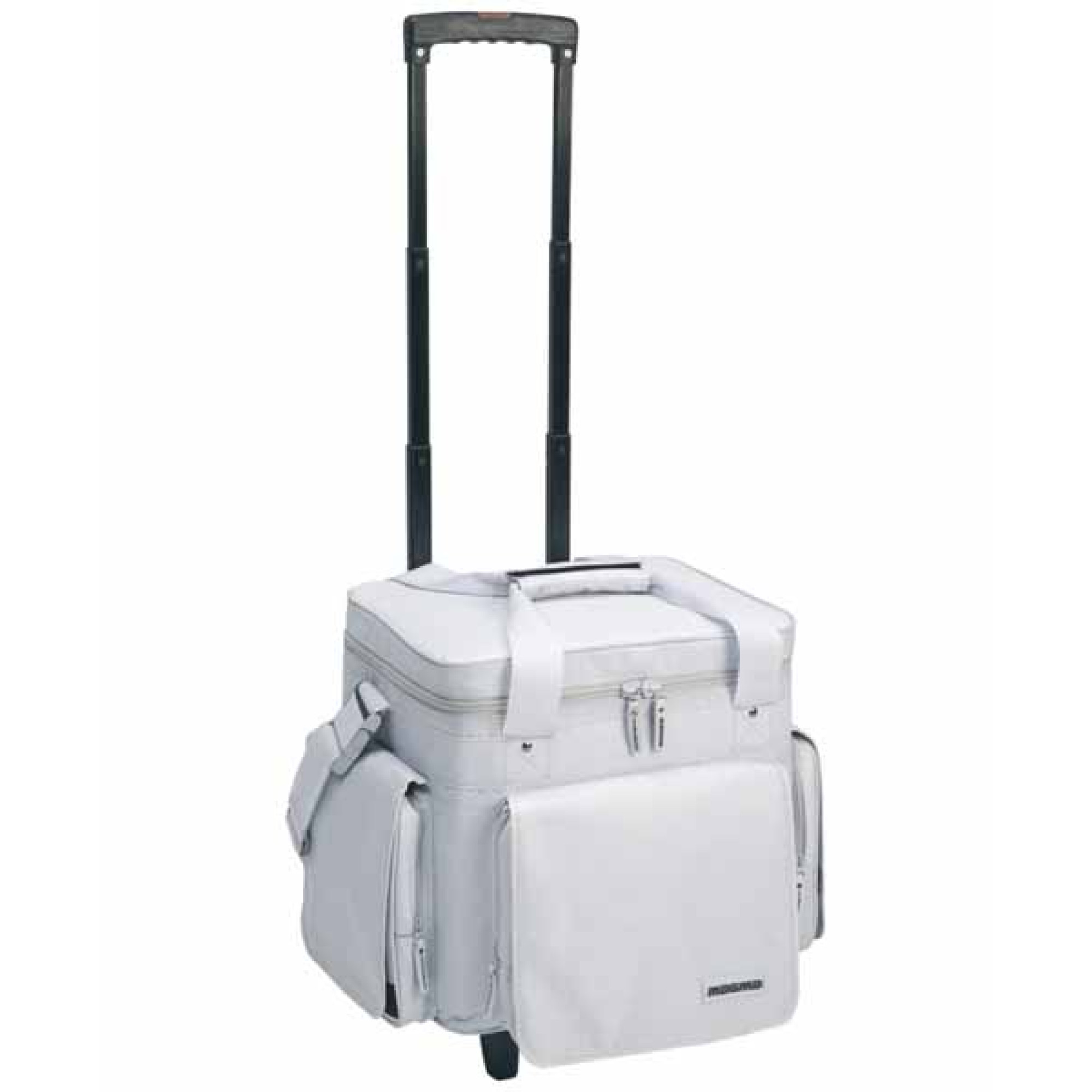 Три дополнительных внешних кармана для наушников, игол и пр. Дополнительные вставки (2,5 см) по всем сторонам. Удобная ручка и съёмный ремень. Выдвижная телескопическая ручка, колёса. Цвет - белый.