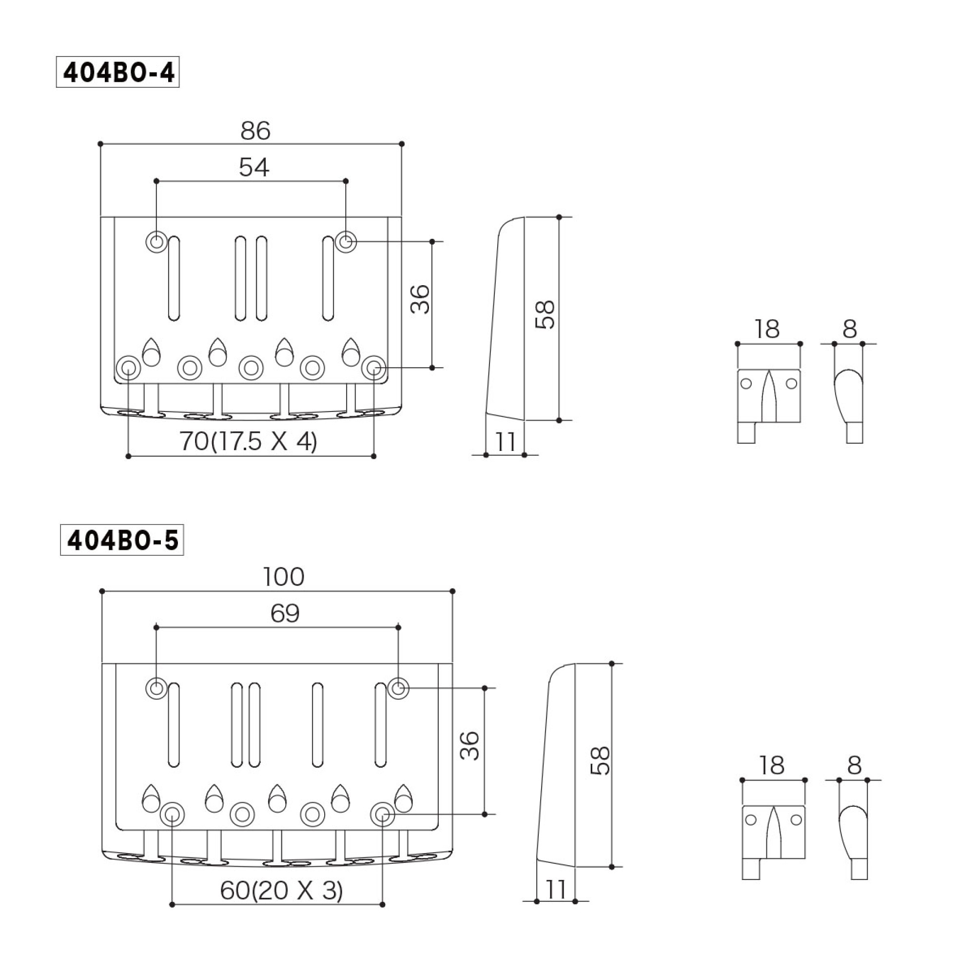 Бриджи для бас-гитар серии 404BO имеют основу из цинка для максимально натуральной звукопередачи и латунные седла для увеличенного сустейна.