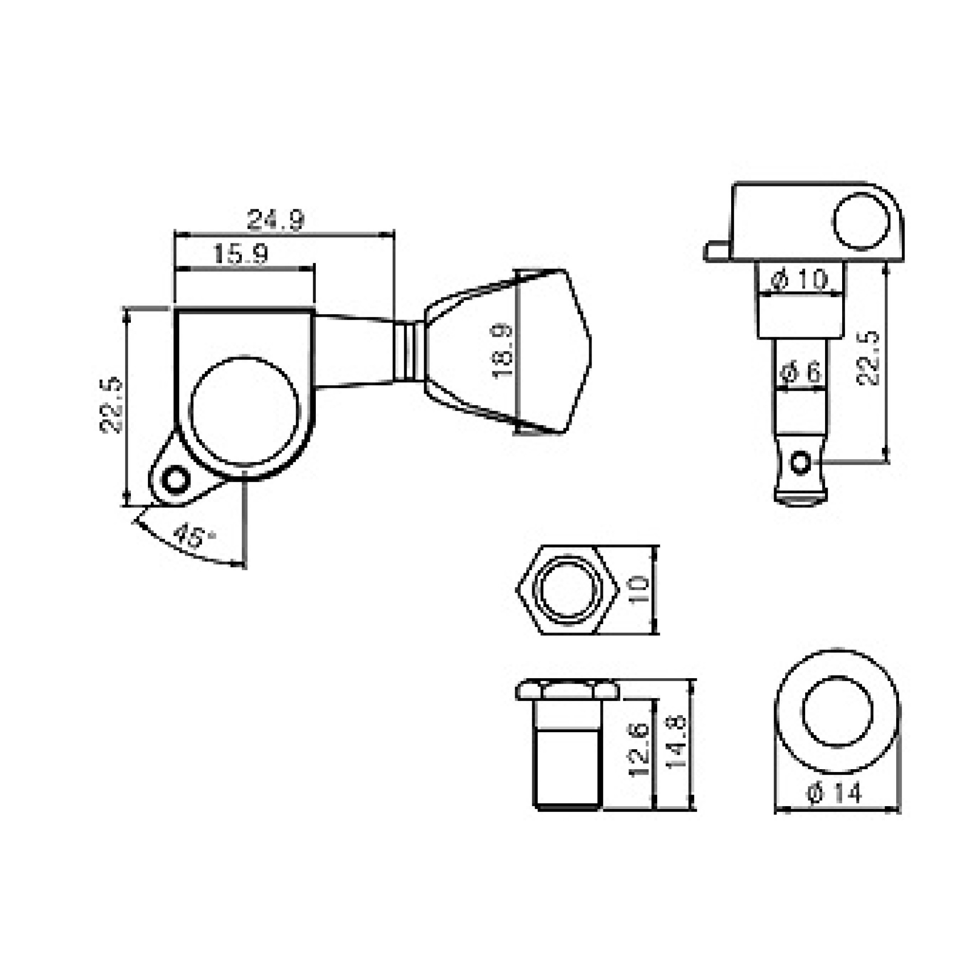 Колки для электрогитары, 6 в линию, закрытый тип, треугольный наконечник, крепление 45гр.