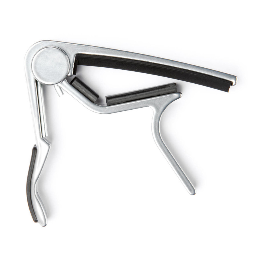 Очень удобный и надежный быстросъемный каподастр Dunlop Trigger Capo для электрогитары. Dunlop Trigger Capo позволяет одним движением руки быстро и легко изменить высоту звучания твоей гитары. Пружинный зажим надежно удерживает каподастр на месте, а изящный тонкий профиль не мешает играть на инструменте. Специальные резиновые вставки защищают гриф инструмента от потертостей и царапин. Trigger Capo изготовлен из легкого и прочного авиационного алюминия и станет твоим верным напарником и помощником на долгие годы.