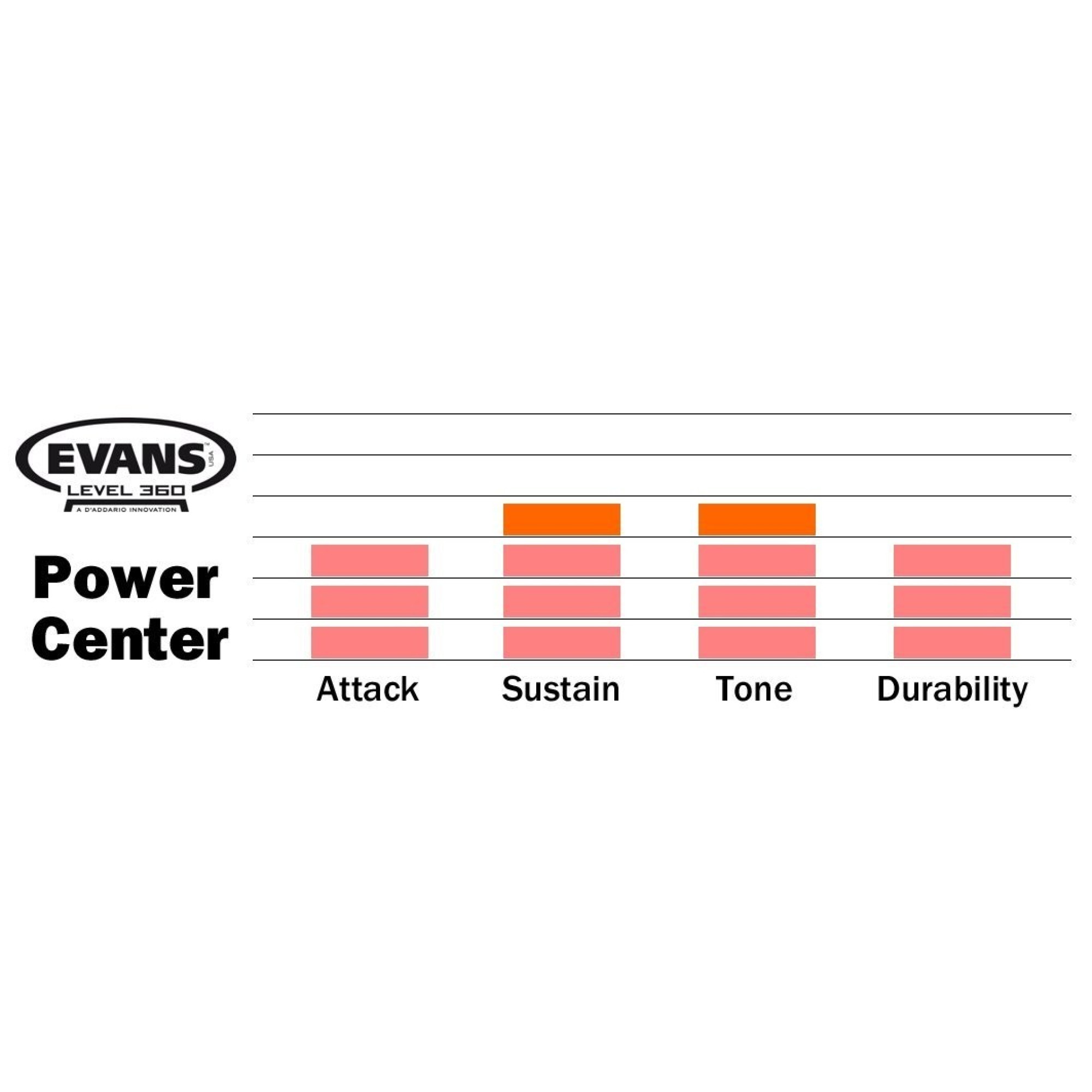 Серия пластиков Evans™ Power Center™ изготовлена из 10mil пленки. Благодаря 5mil накладке, расположенно в центре, пластик становится экстра прочным и приобретает большую направленность звучания. Специальные прорези в накладке позволяют пластику быть гибким, сохраняя открытость звучания и хороший резонанс.