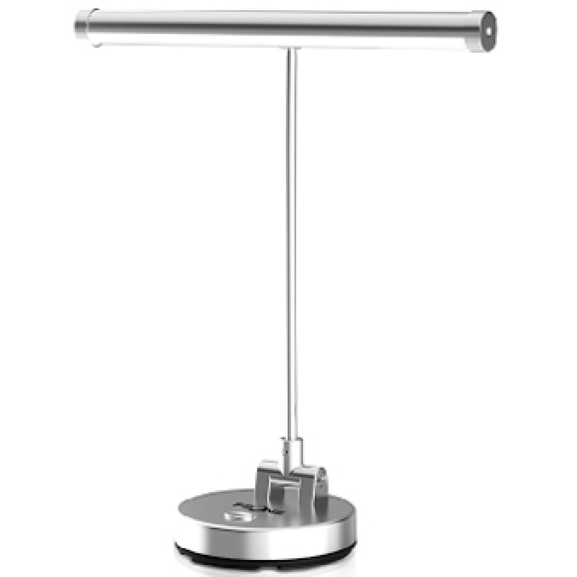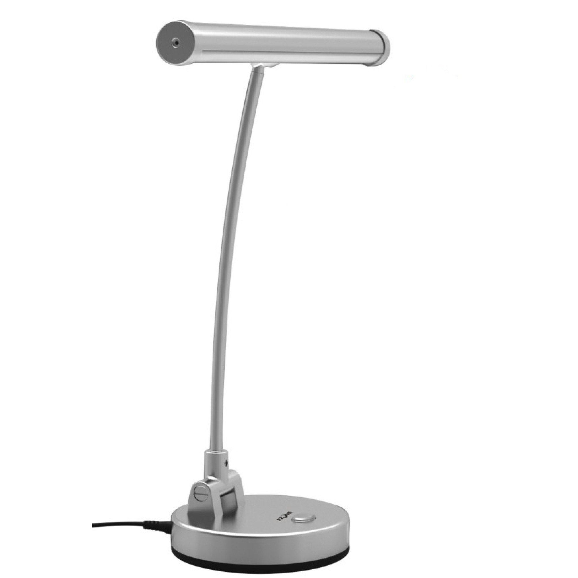 Гибкая лампа цвета хром с подставкой и регулировкой угла наклона. Идеально подходит для освещения пюпитров на фортепиано и роялях. Работает не только через адаптер, но и от 3-х батареек типа АА, что позволяет использовать даже при отсутствии сети. При этом лампа за счет 10 светодиодных ламп очень экономная и работает от батареек до 20-ти часов.