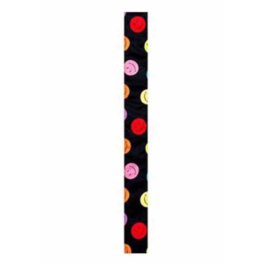Ремень для гитары, тканый с кожаными окончаниями, стиль «смайлики», цвет черный.