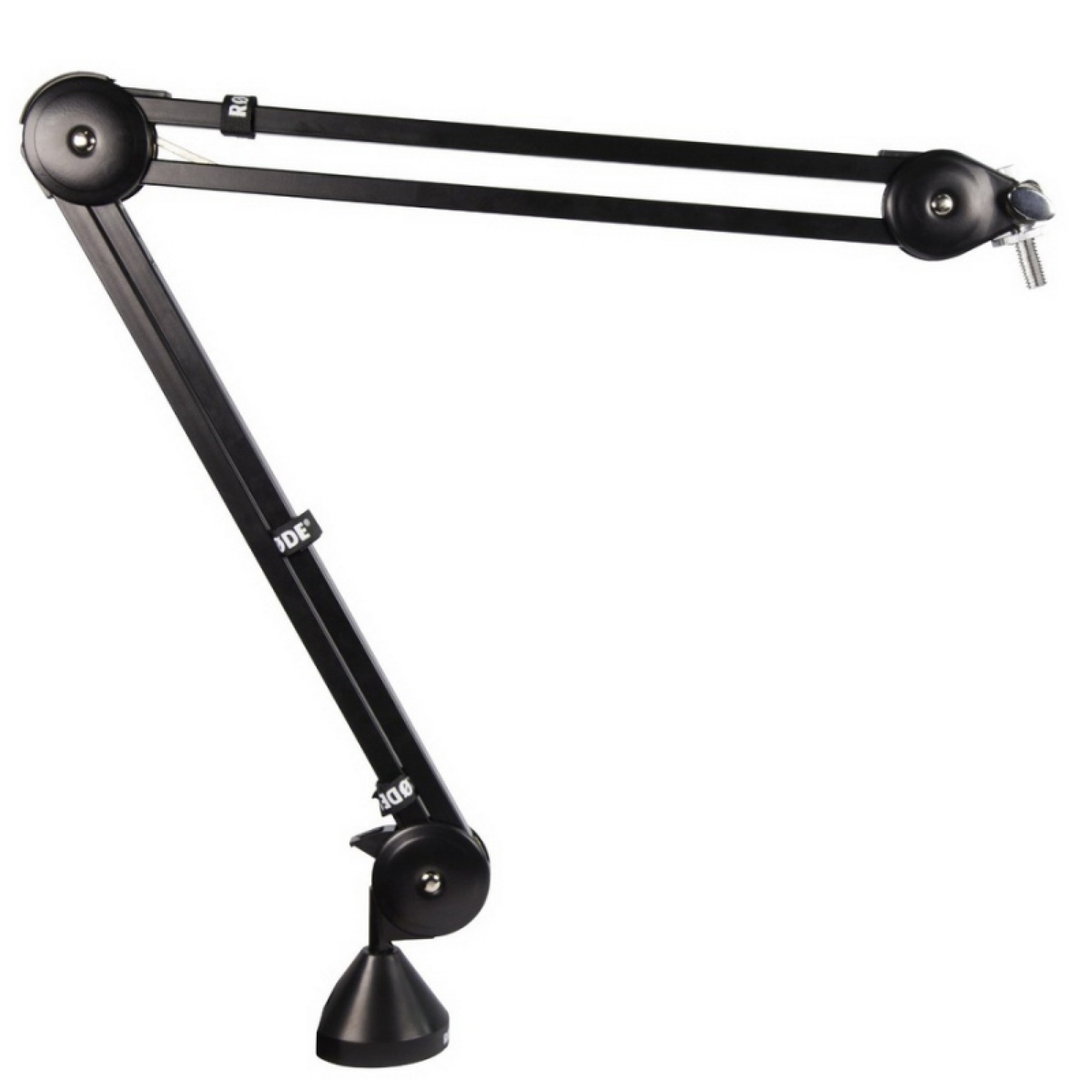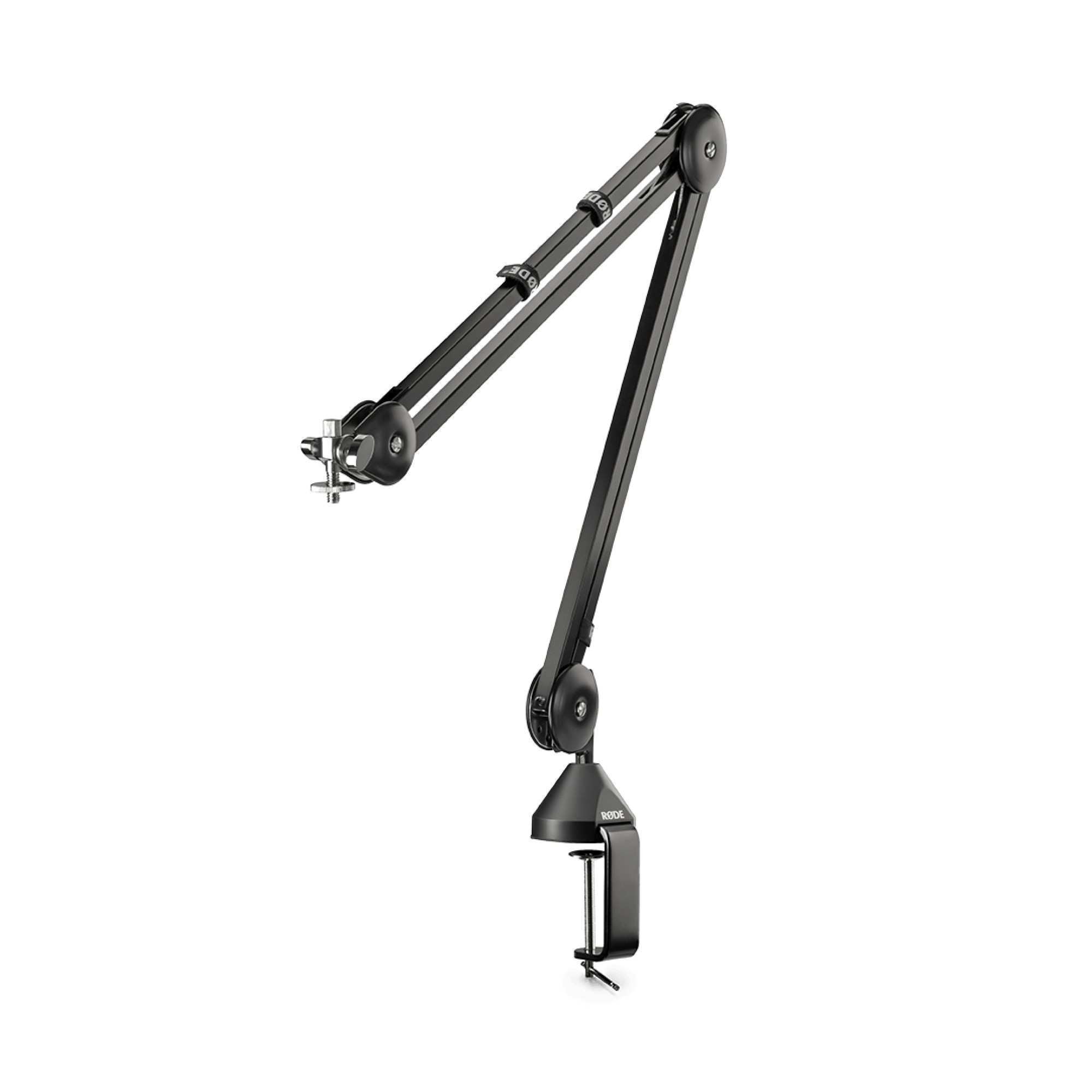 Rode PSA1 – профессиональная студийная стойка для микрофонов (пантограф). Два типа крепежа. Поворот на 360 градусов. PSA1 имеет горизонтальную длину до 820 мм и вертикальную до 840 мм со сквозной (врезной крепеж) и зажимной крепью (за край стола), подходит для поверхностей до 55 мм толщиной (зажим) и до 70 мм (винт).