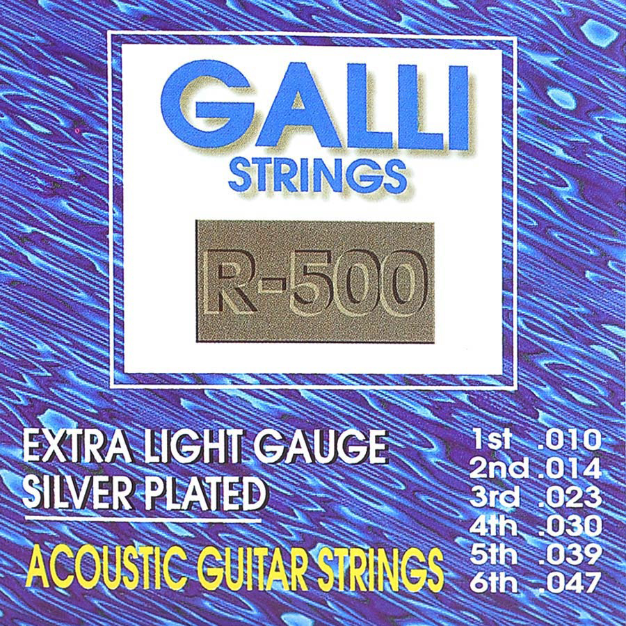 Gallistrings R-500 EXTRA LIGHT – комплект из 6 струн экстра легкого натяжения, посеребренная обмотка, калибр струн .010 – .047.
