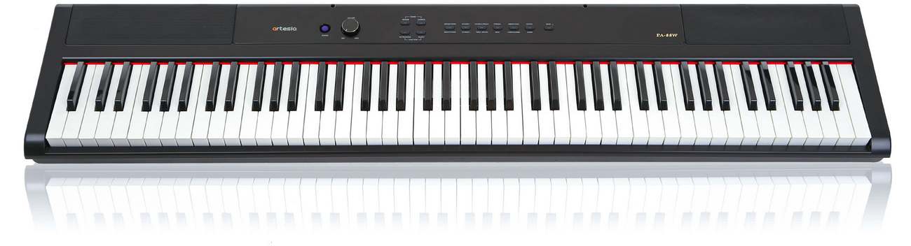 Но что выбрать для начинающего музыканта, которому приходится много тренироваться в разных условиях? Предлагаем вам обратить внимание на компактное цифровое пианино ARTESIA PA-88W, представленное в нашем магазине в черном и белом исполнениях. Достаточно просто поставить на письменный стол, чтобы дома появилась собственная маленькая студия.
