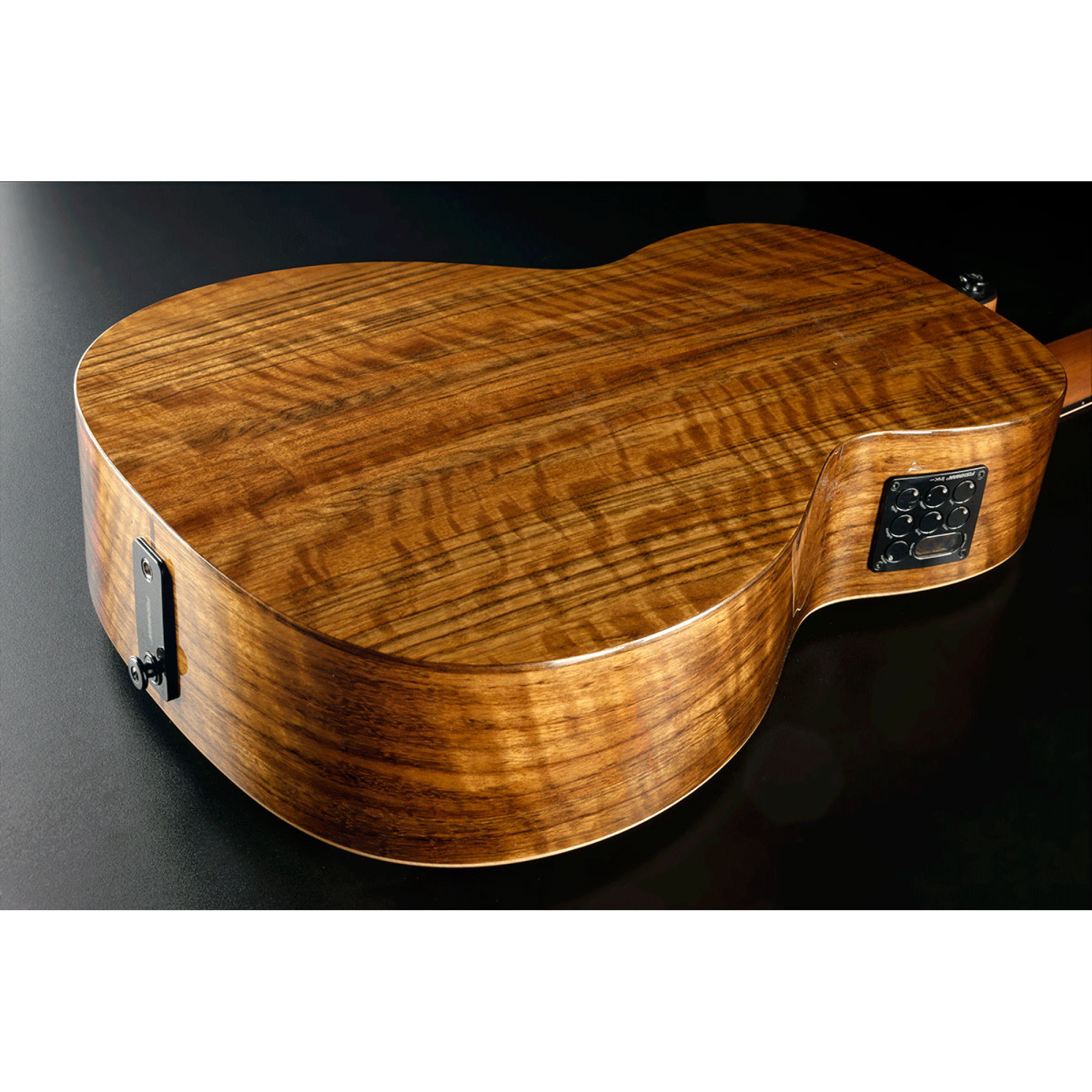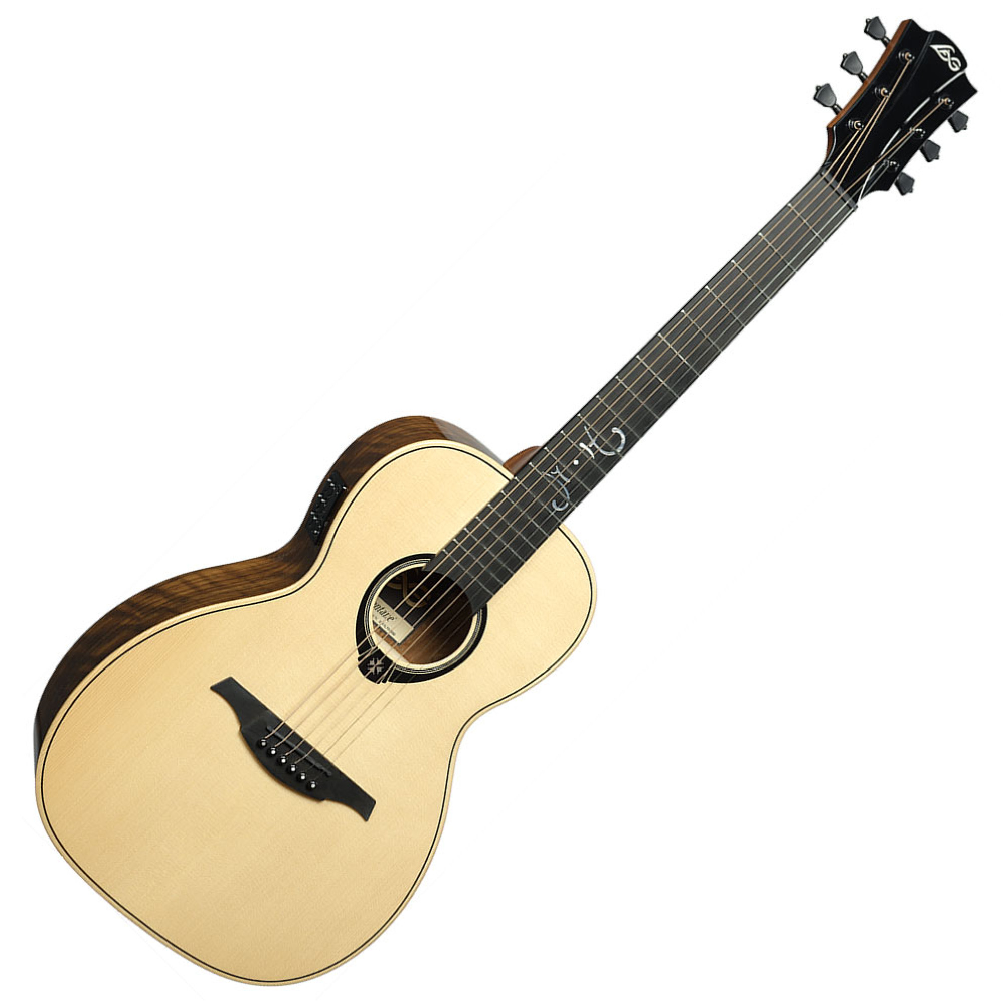 По звучанию, изящество и мощность звука этой гитары потрясают, особенно учитывая ее компактные размеры. Расширенные межструнные отступы у бриджа способствуют комфортной игре. Встроенный усилитель Fishman мастерски воспроизводит естественное акустическое звучание овангколя.