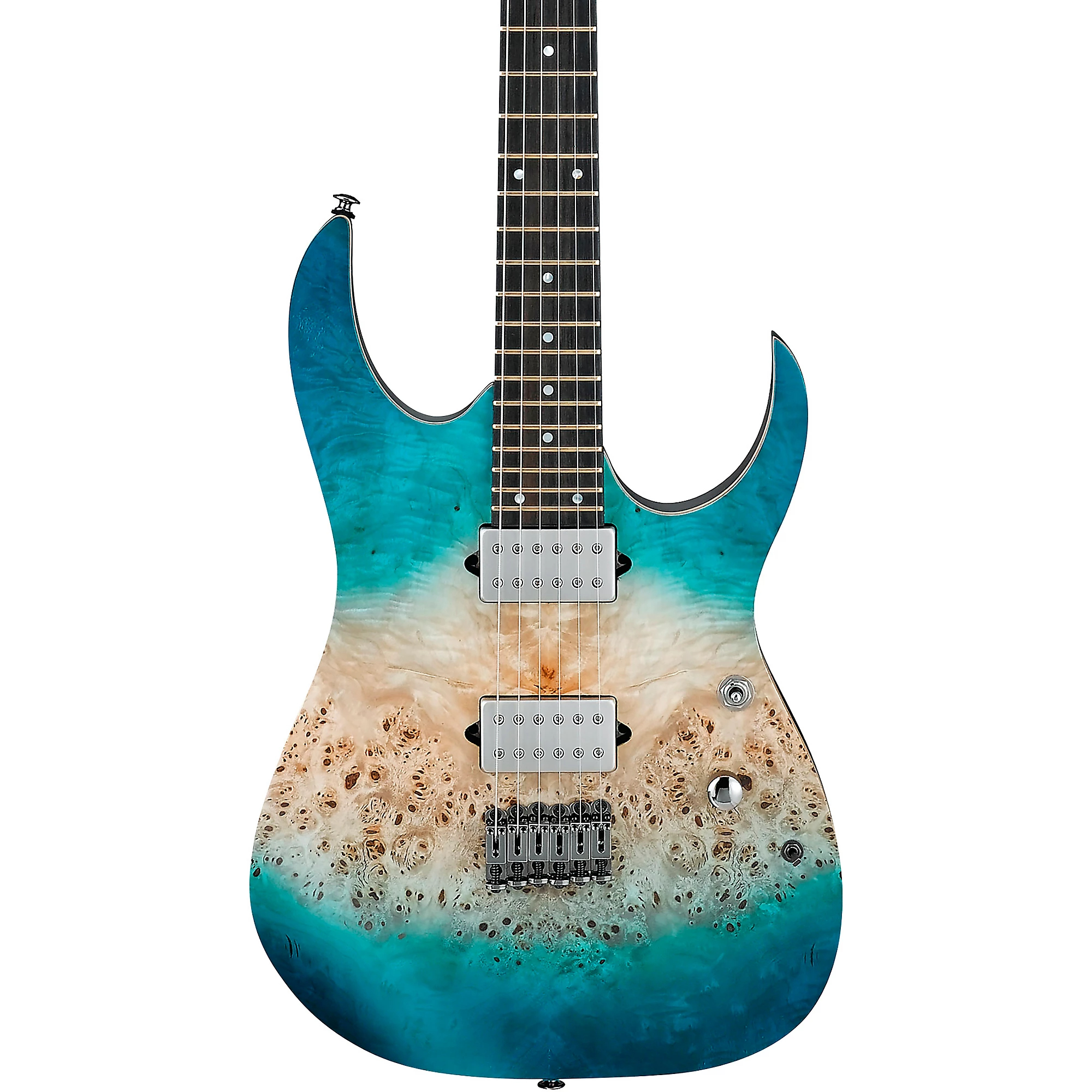 Корпус из американской липы обеспечивает сбалансированный тон, а великолепная накладка грифа из черного дерева, украшенная поразительными перламутровыми вставками и золотыми ладами Jescar EVO, излучает живую проекцию и долгий сустейн. Благодаря двум звукоснимателям-хамбакерам DiMarzio Fusion Edge и 3-позиционному переключателю Вы сможете формировать свой тон так, как Вам нравится. Кроме того, система коммутации обеспечивает 6 различных комбинаций звукоснимателей с помощью мини-тумблера и трехпозиционного переключателя. Какой бы тон Вы ни придумали в своей голове, RG1121PB сможет его воспроизвести. Ibanez RG1121PB оснащен монорельсовым бриджем Ibanez, в котором для каждой отдельной струны используется отдельная часть бриджа. Это обеспечивает более плотное соединение компонентов и улучшает передачу вибрации струн на тональную древесину для более чистого и резонансного звука. Кроме того, он предотвращает воздействие вибрации струн друг на друга, что может улучшить артикуляцию.